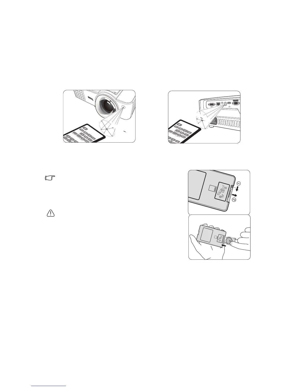 • If the battery is dead or if you will not be using the remote control for a long time, remove the battery to