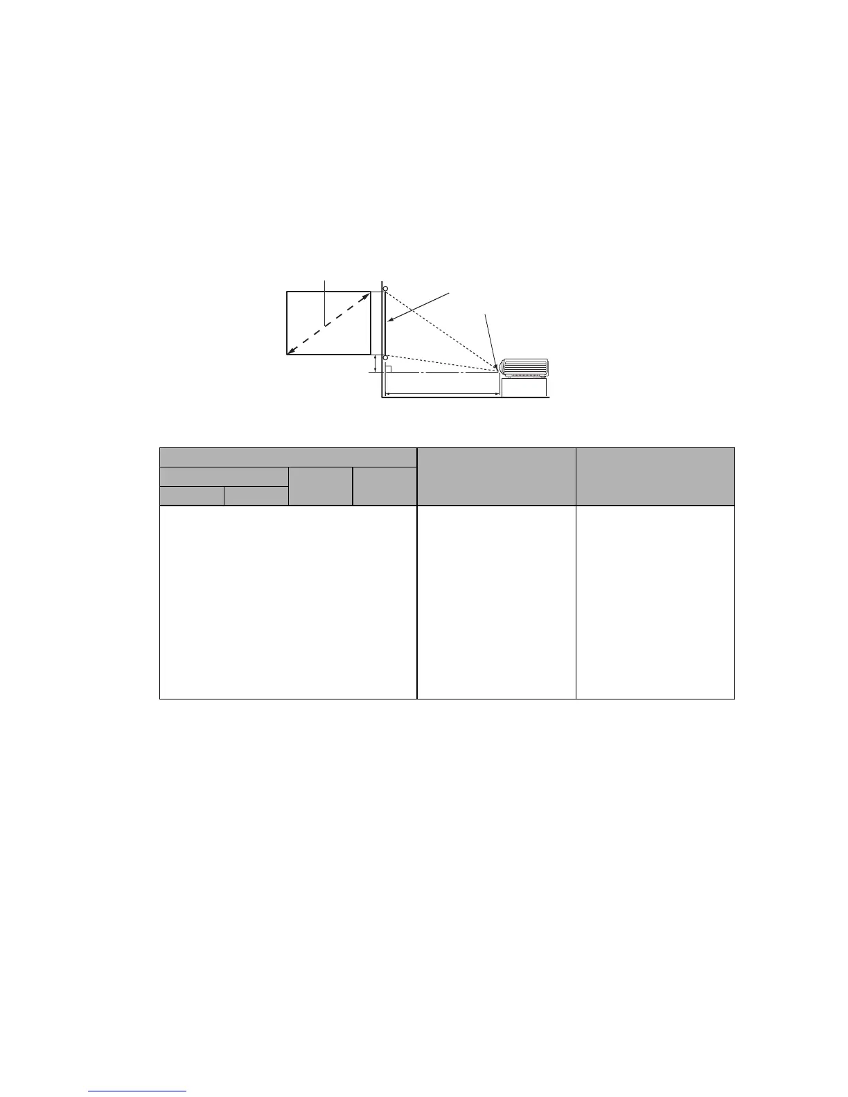 If your measured projection distance is 2.5 m (2500 mm), the closest match in the "(b)