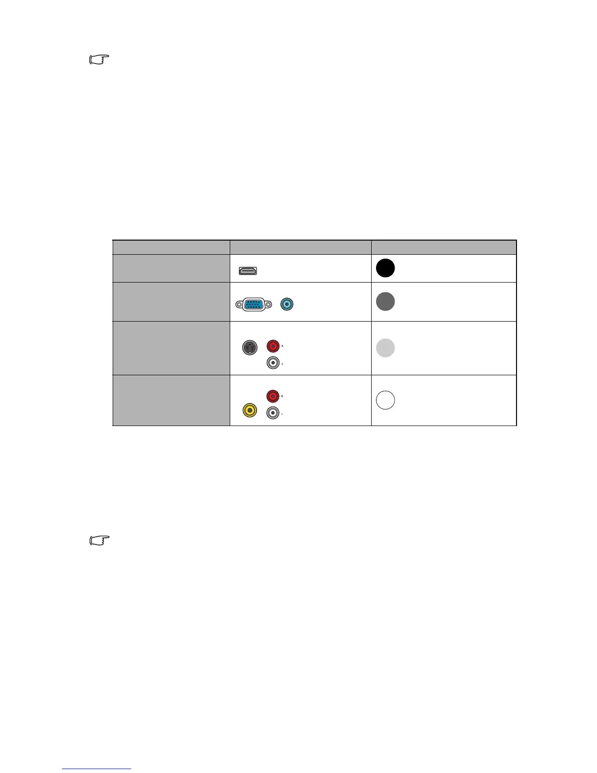 • The projector is only capable of playing mixed mono audio, even if a stereo audio input is connected. See