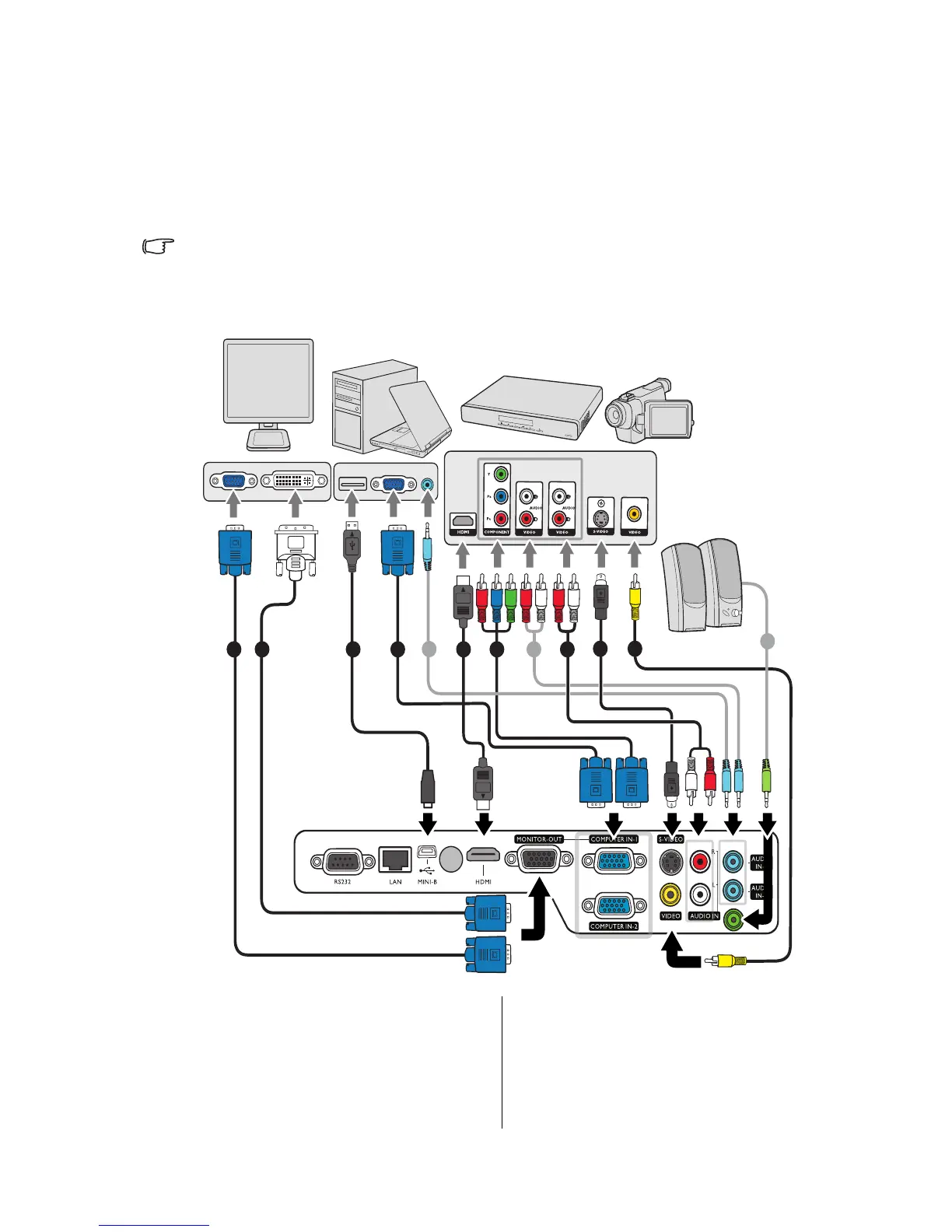 • In the connections shown below, some cables may not be included with the projector (see "Shipping