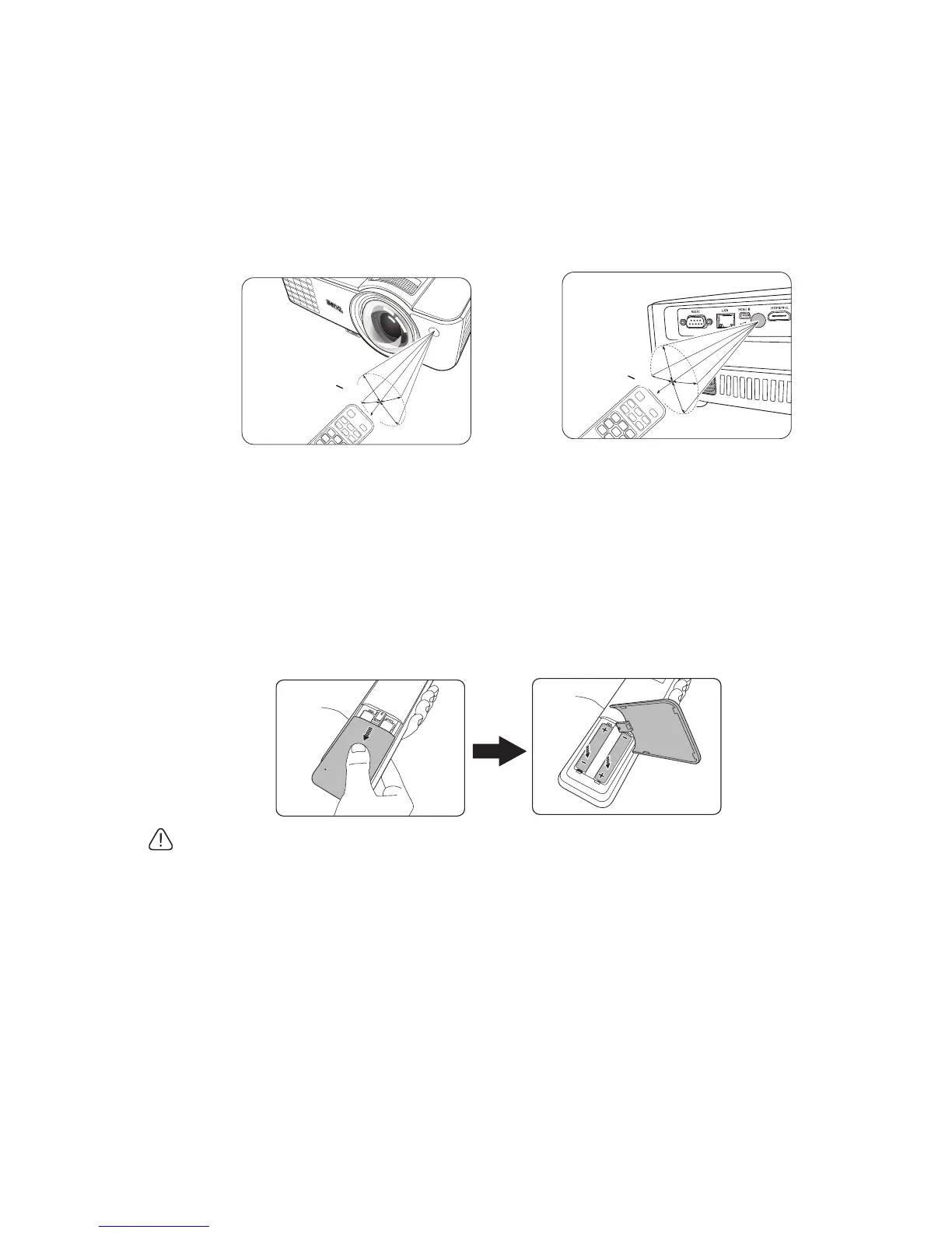 projector's IR remote control sensor(s) to function correctly. The distance between the
