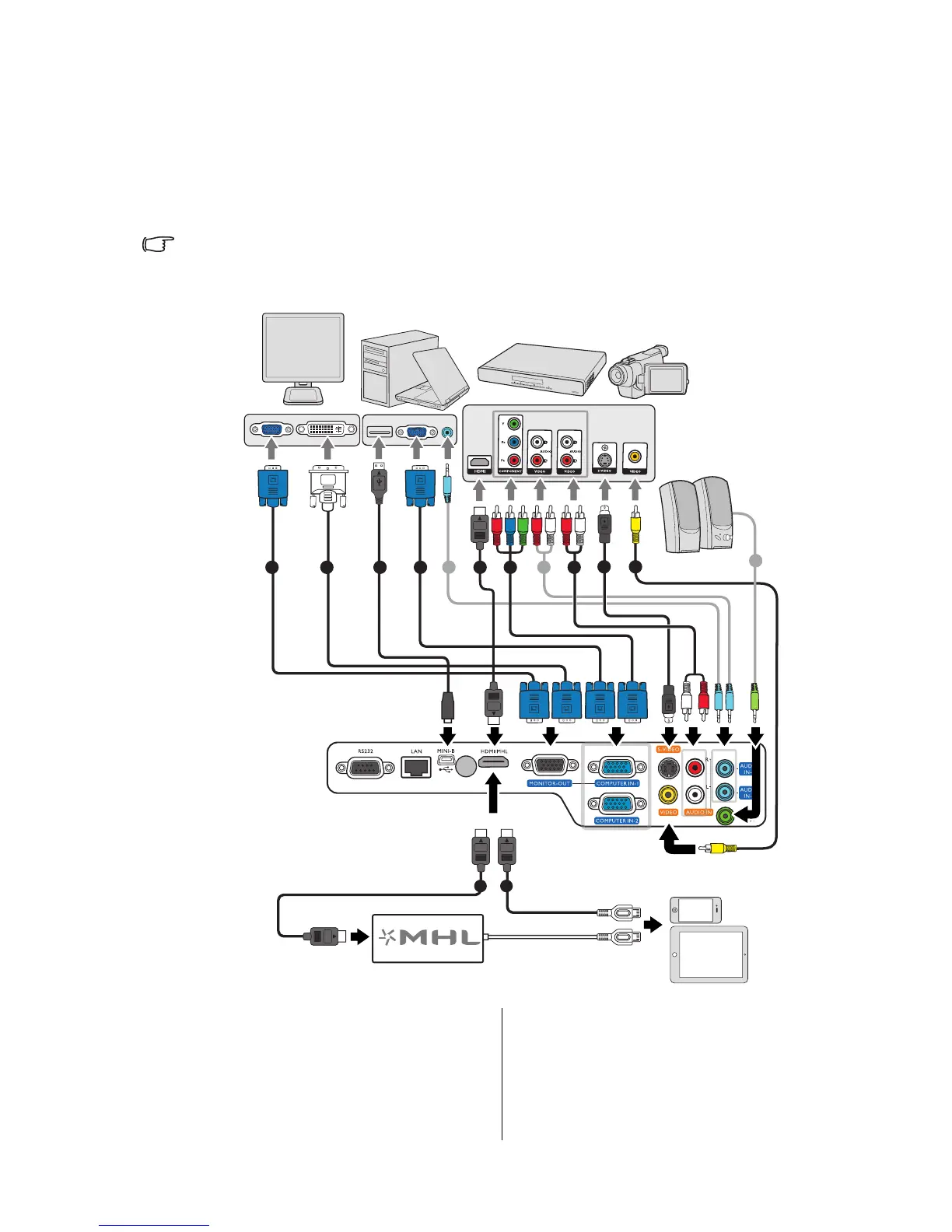 • In the connections shown below, some cables may not be included with the projector (see "Shipping