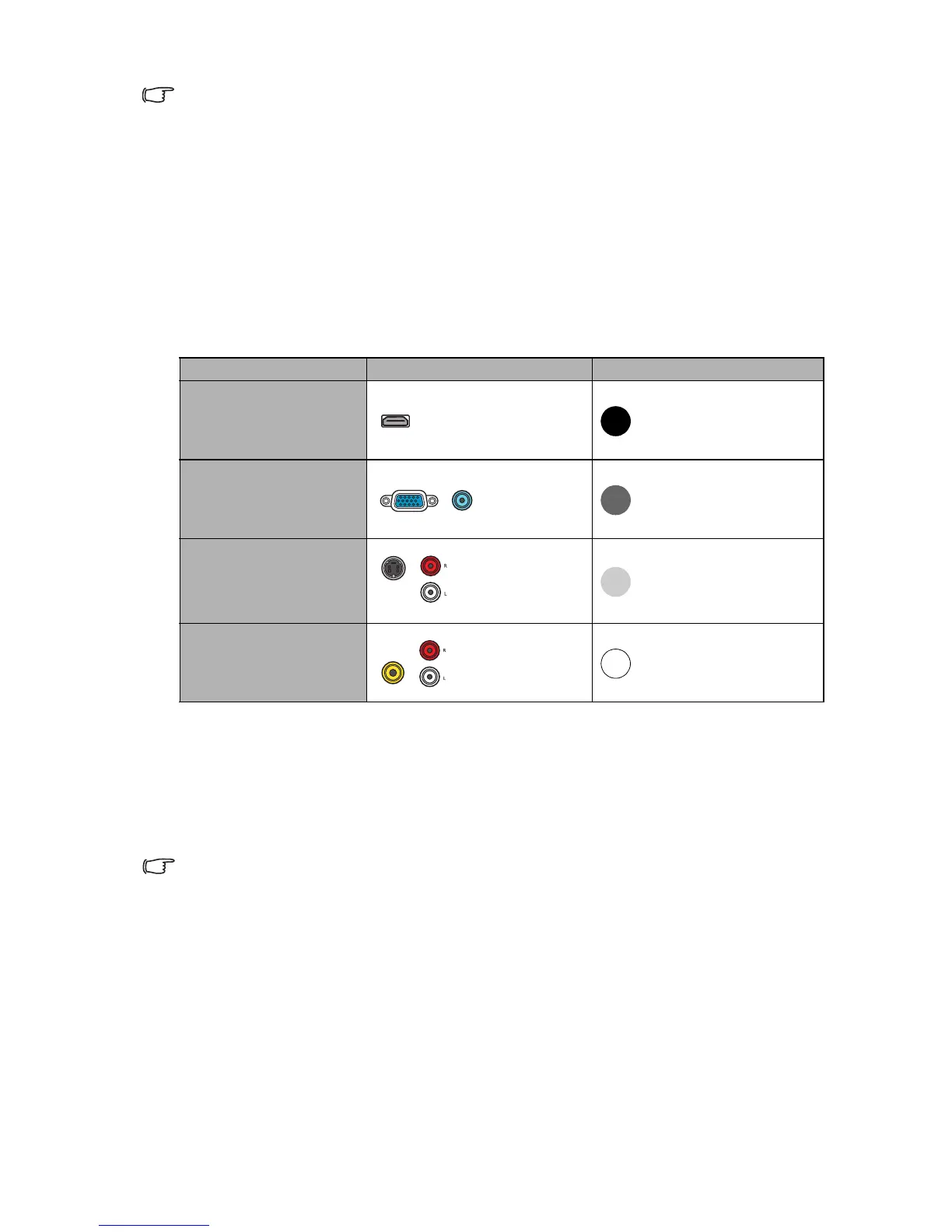• The projector is only capable of playing mixed mono audio, even if a stereo audio input is connected. See