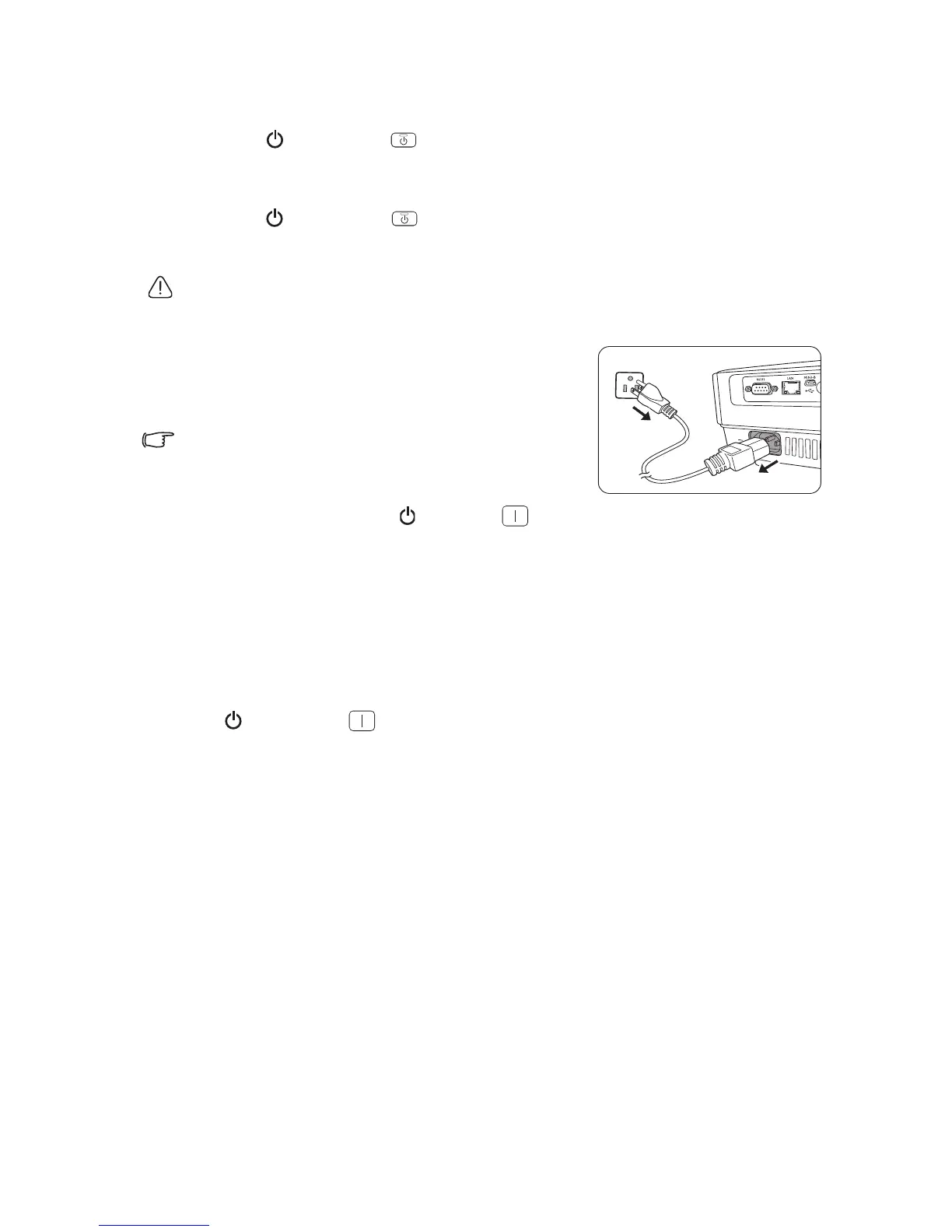 press POWER or ON again to start the projector after the fans stop and the