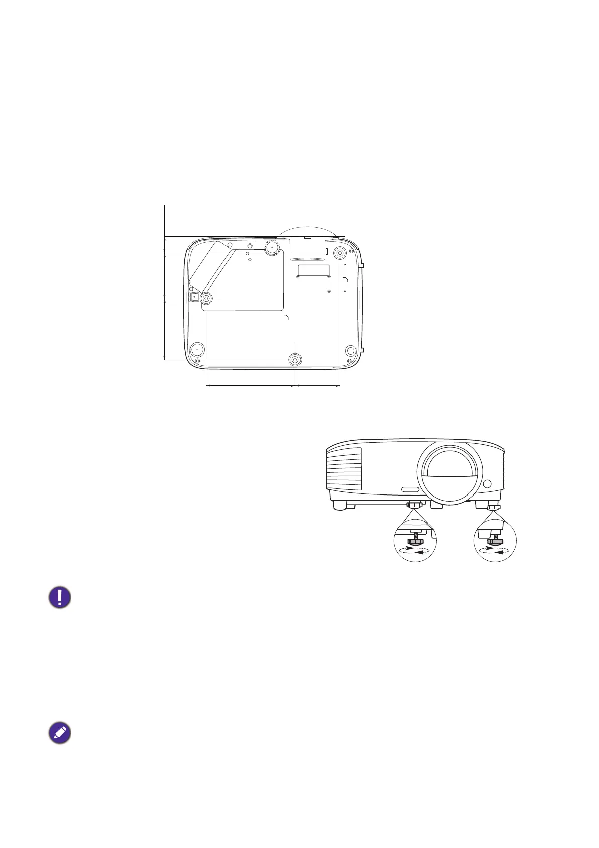 exceeding the recommended range may cause damage to the projector and subsequently falling off.
