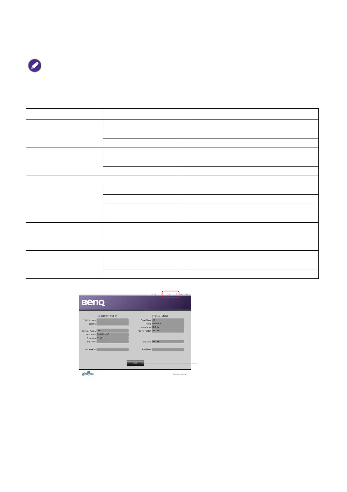 After making the adjustments, press the Send button and the data will be saved in the projector.