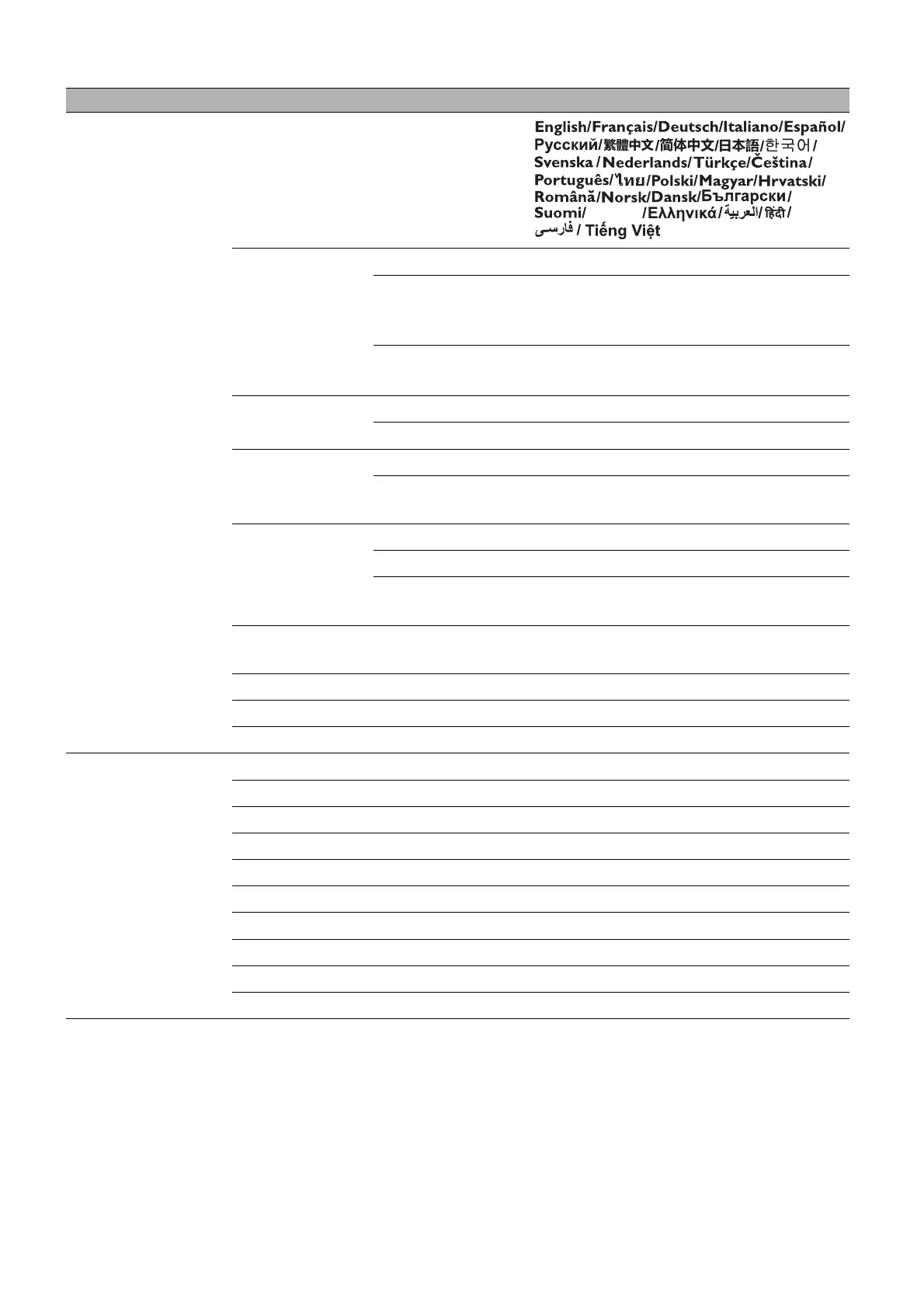 Main menu Submenu Options