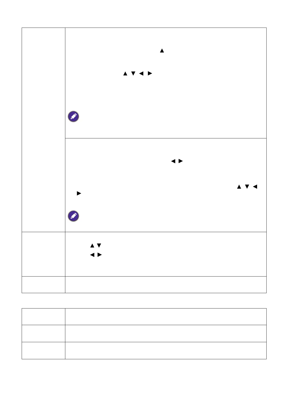 directional arrows ( , , , ) on the projector or remote control to