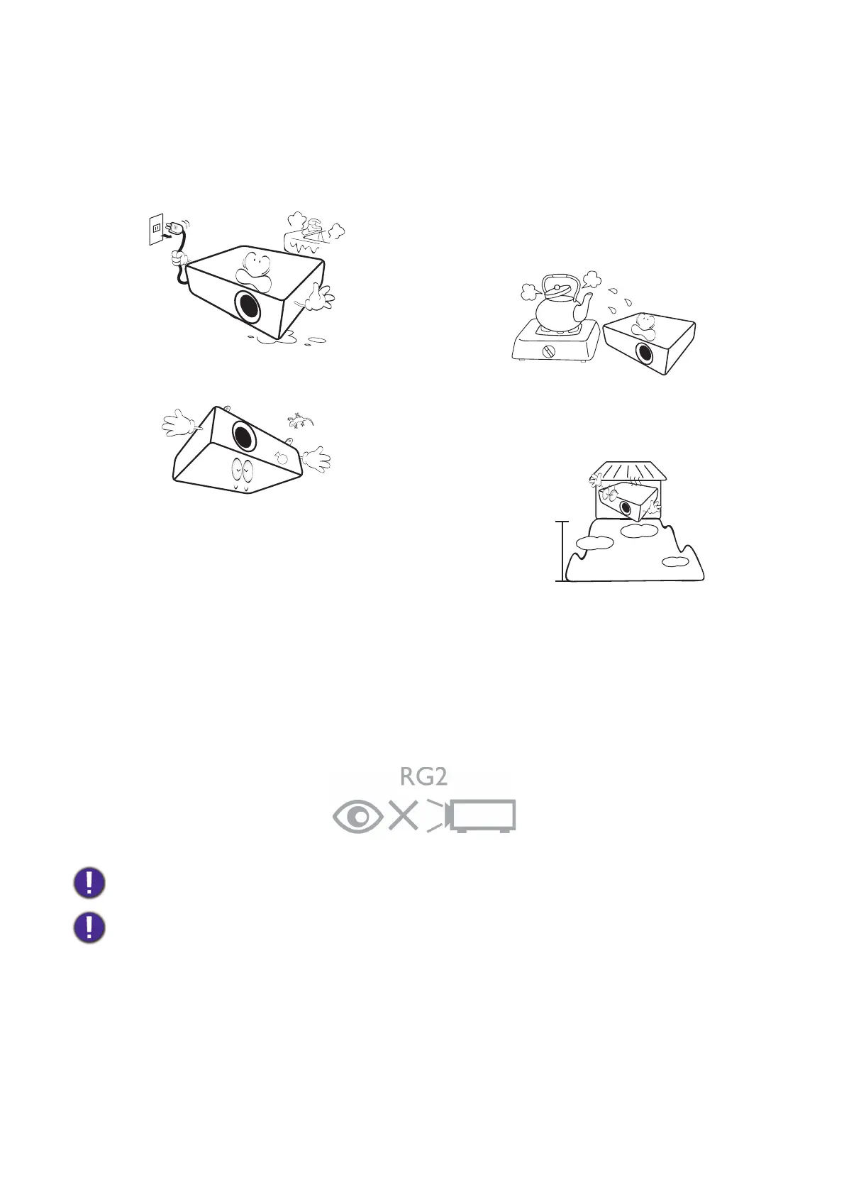 To avoid damaging the DLP chips, never aim a high-power laser beam into the projection lens.