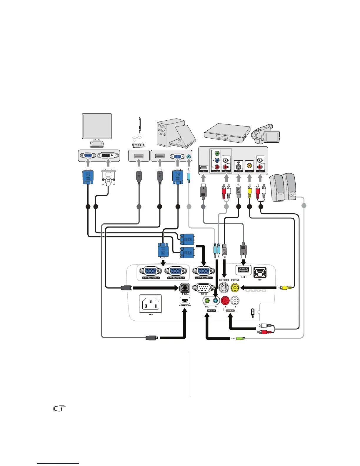 In the connections shown below, some cables may not be included with the projector (see "Shipping contents"