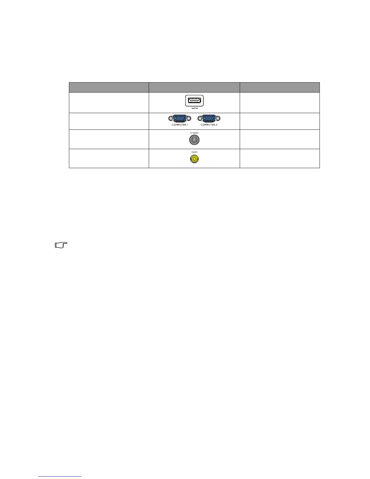 • The projector is only capable of playing mixed mono audio, even if a stereo audio input is connected. See