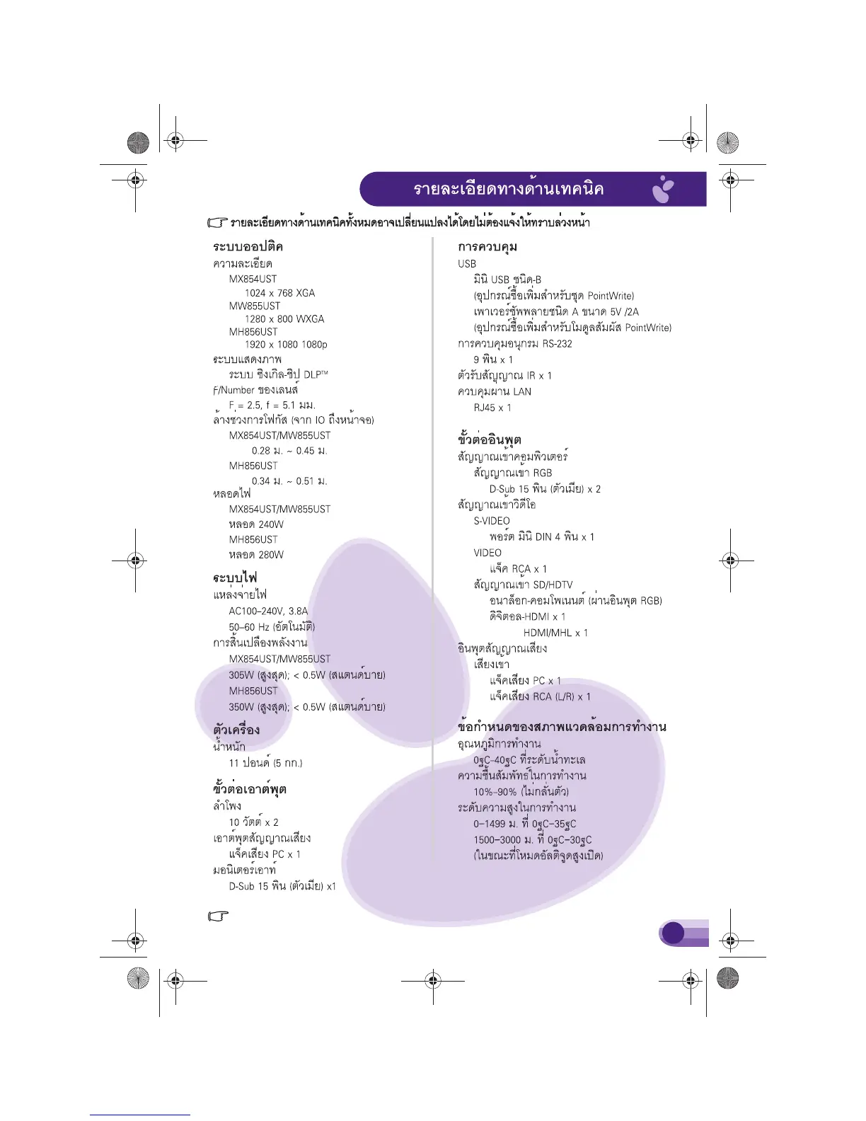 สำหรับการตัง้ ค่าชุด PointWrite บนโปรเจคเตอร์ โปรดดูคู่มือ PointWrite