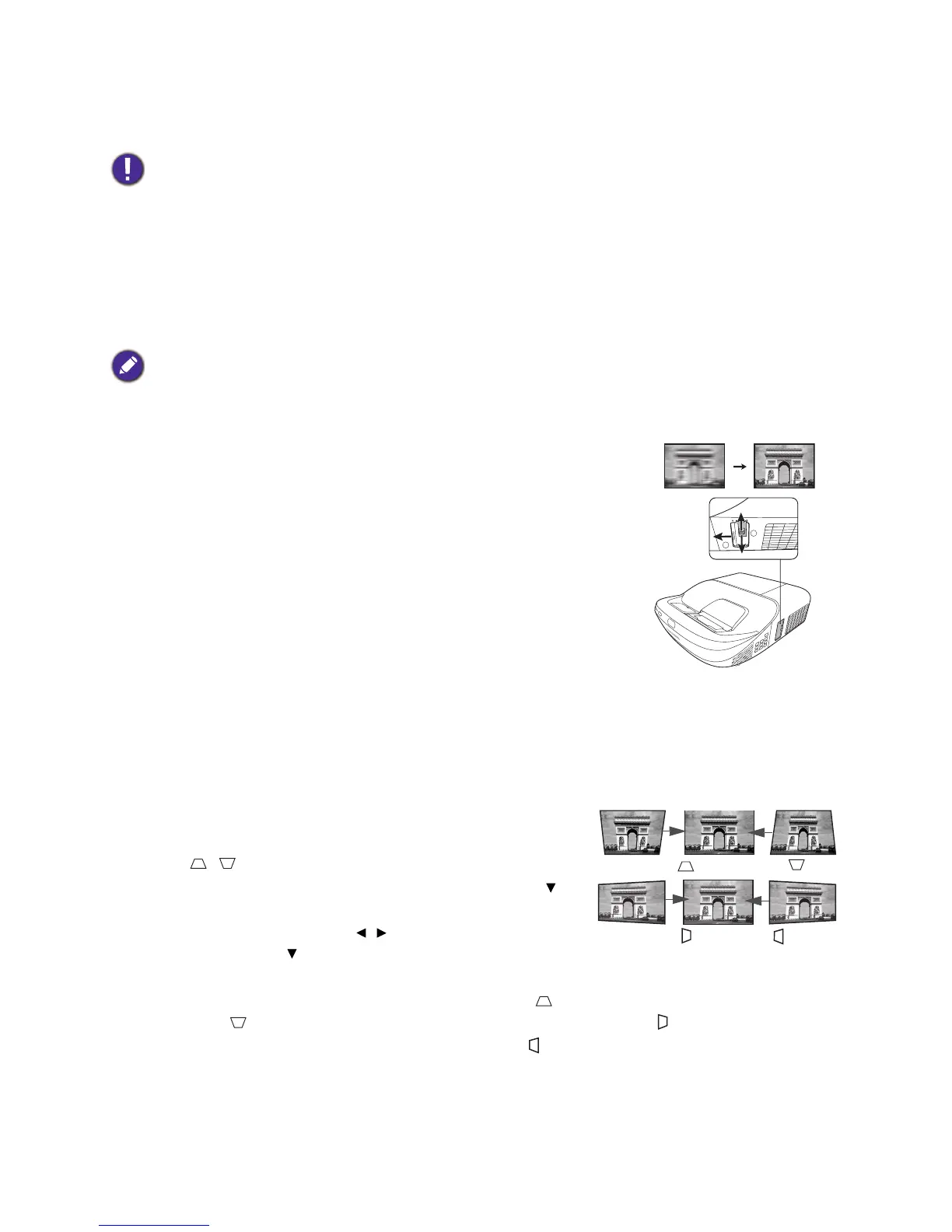 image. Press to correct keystoning at the bottom of the image. Press on the projector to