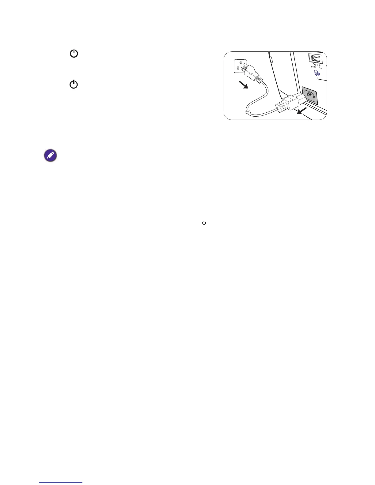 The AC power cord can be pulled out right after the projector is turned off. To protect the lamp, wait