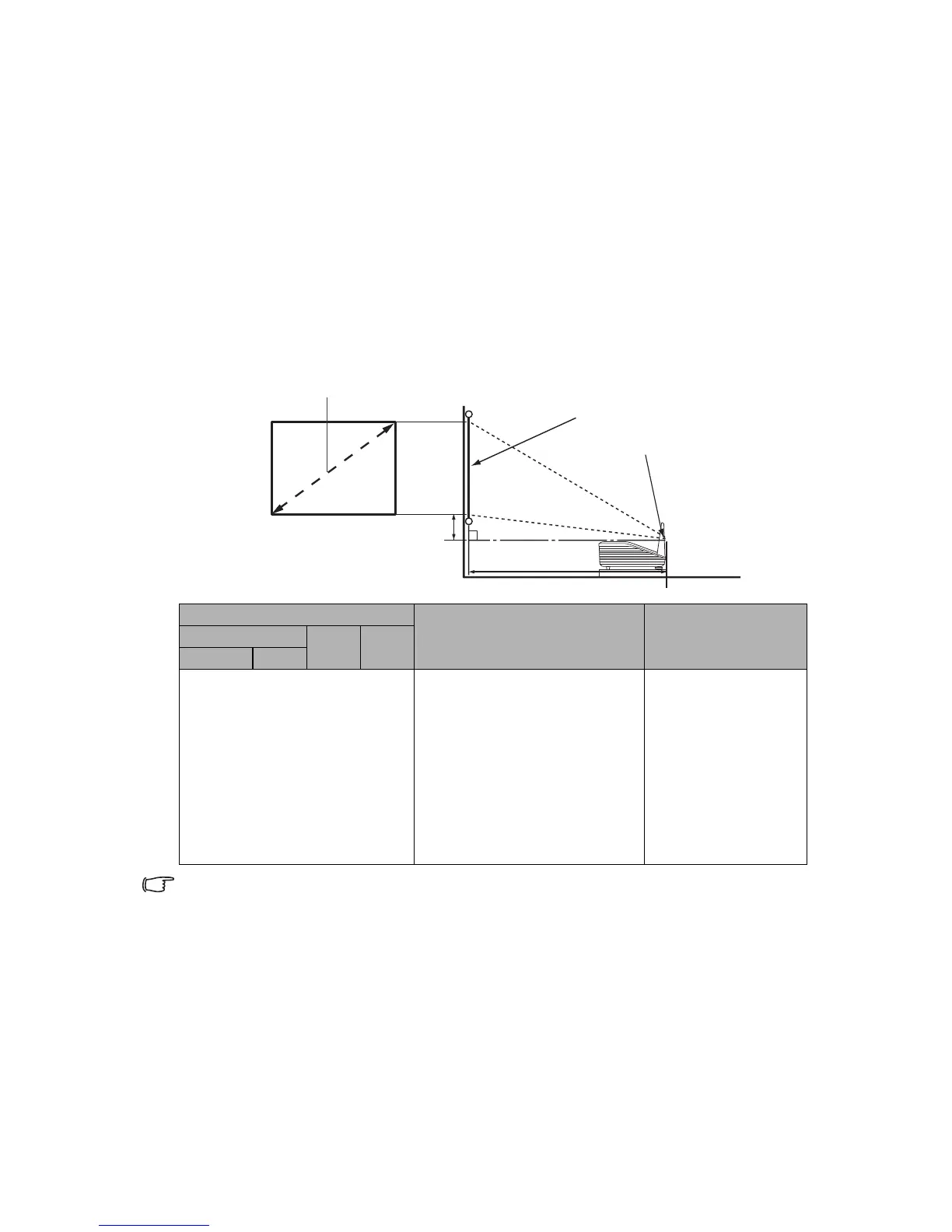 For example, if you are using an 120-inch screen, the recommended projection distance is