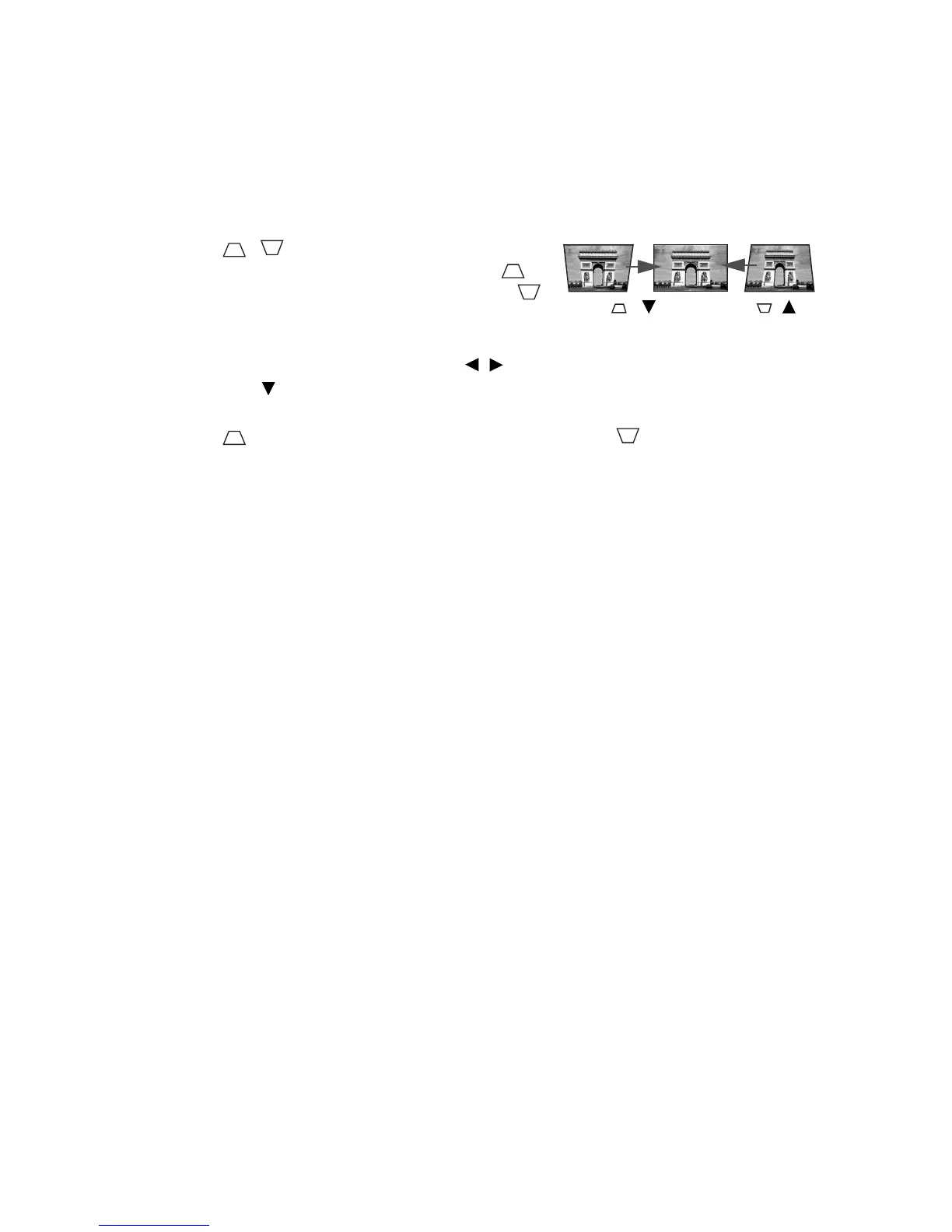 Press to correct keystoning at the top of the image. Press to correct keystoning at