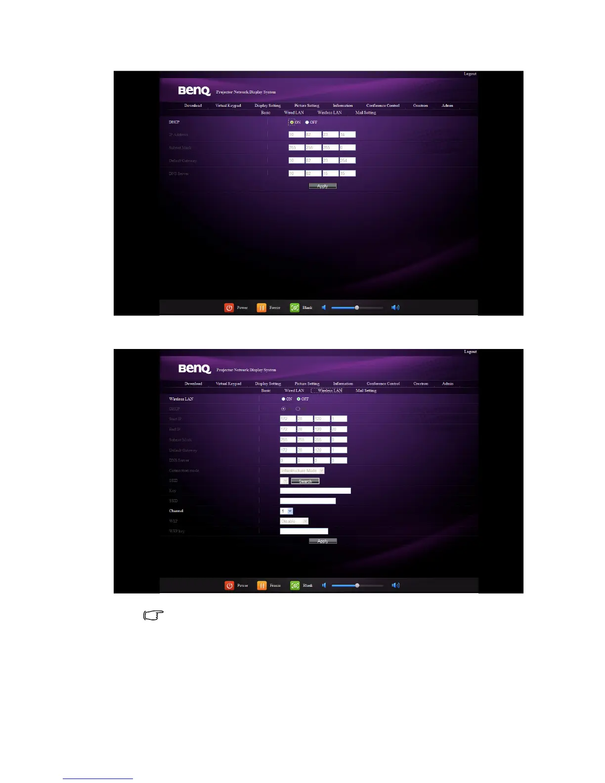 The Wireless LAN page allows you to adjust the Wireless LAN settings.