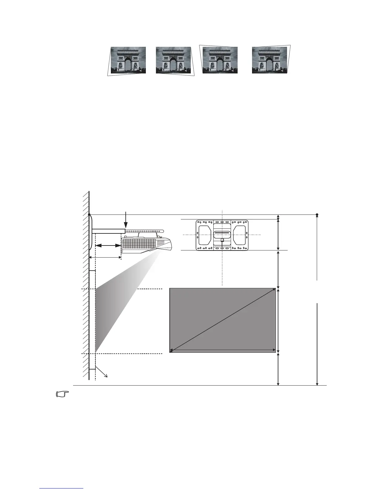 • Installation distance D is measured from the projector rear side to the wall surface, which is also indicated