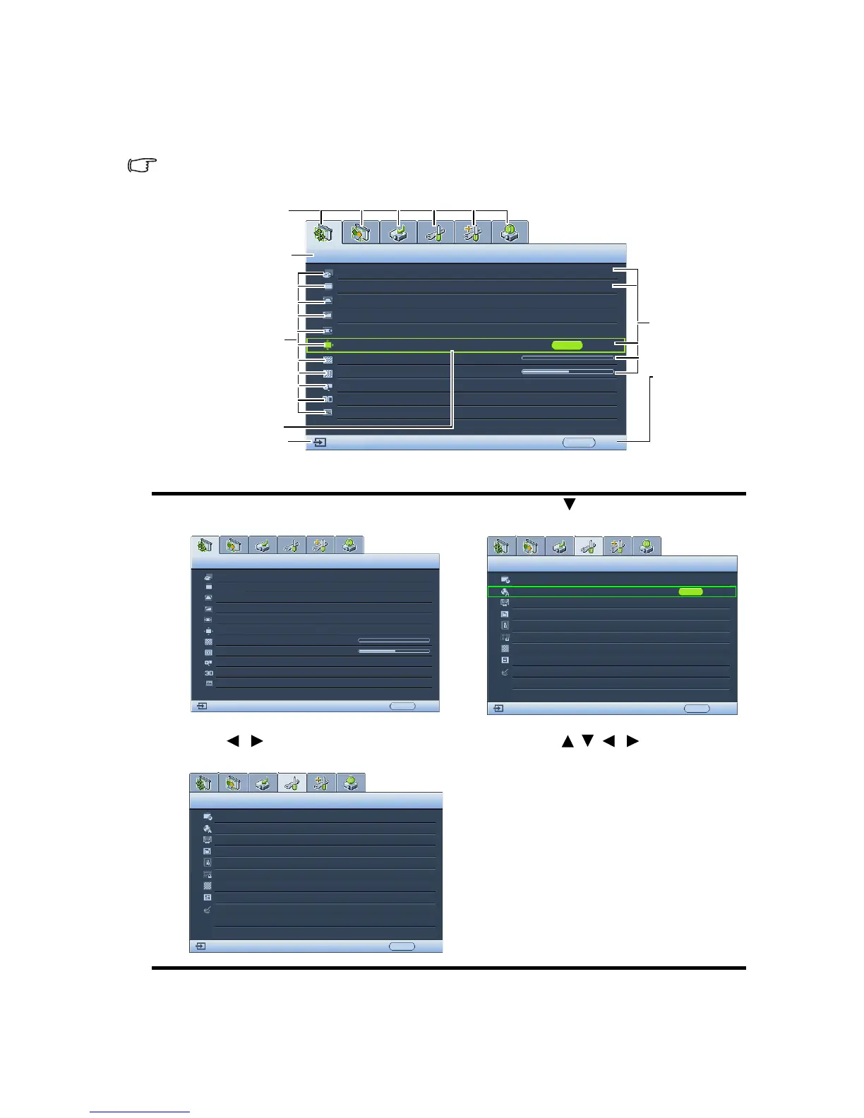 The projector is equipped with On-Screen Display (OSD) menus for making various