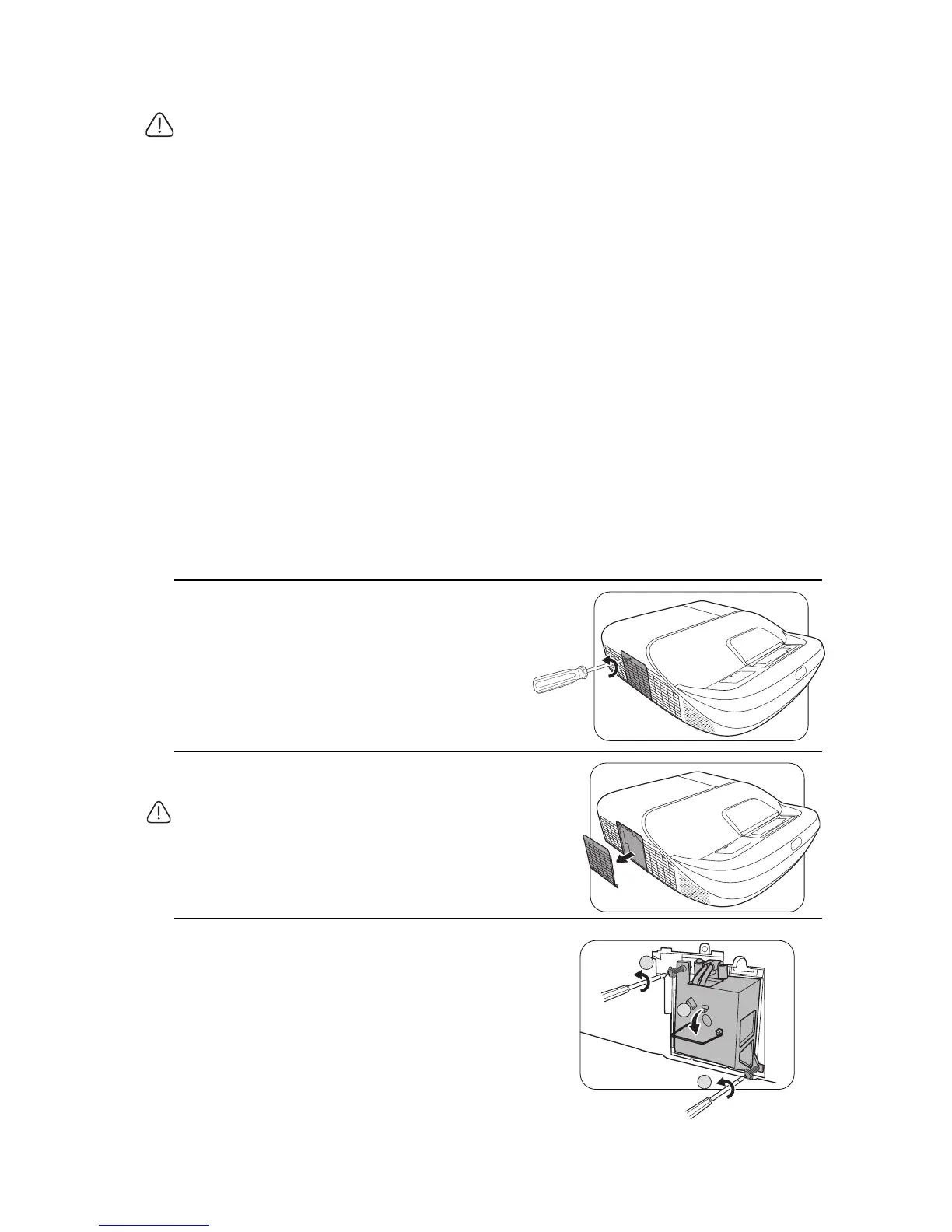 • To reduce the risk of severe burns, allow the projector to cool for at least 45 minutes before replacing the