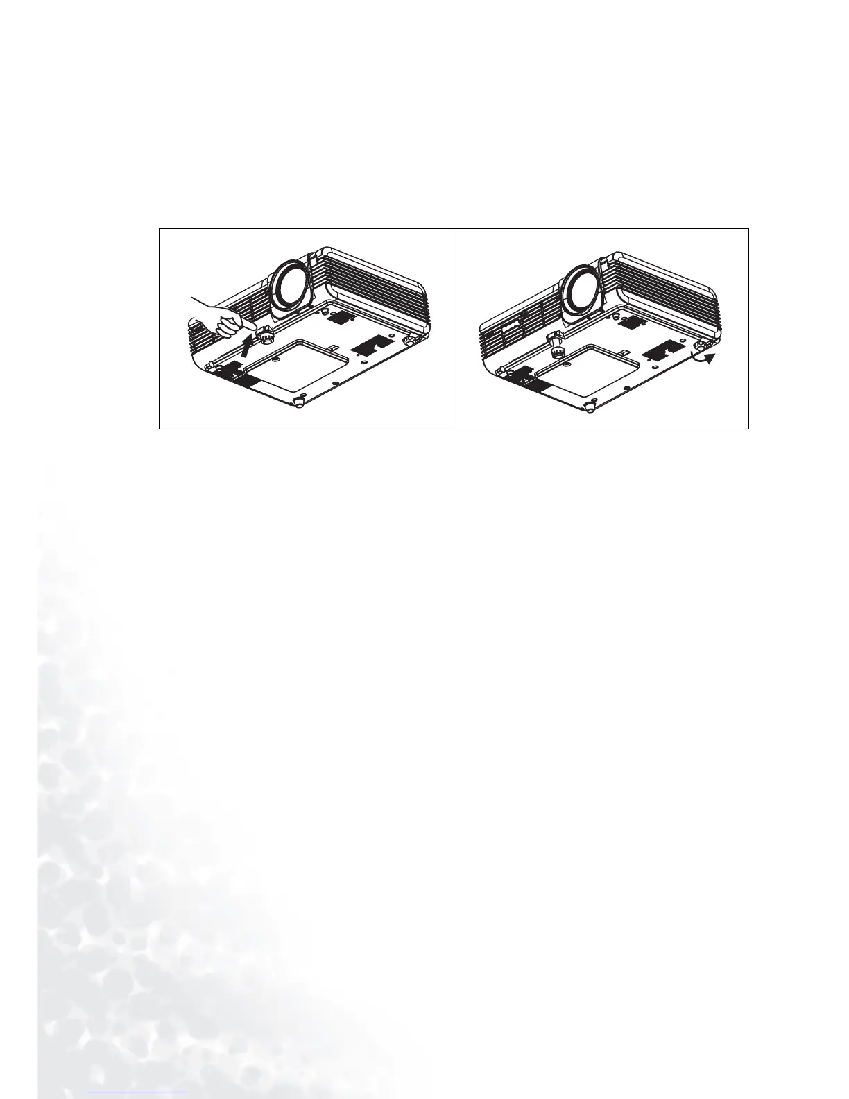 1. Lift the projector up and press the adjuster button to release the adjuster.