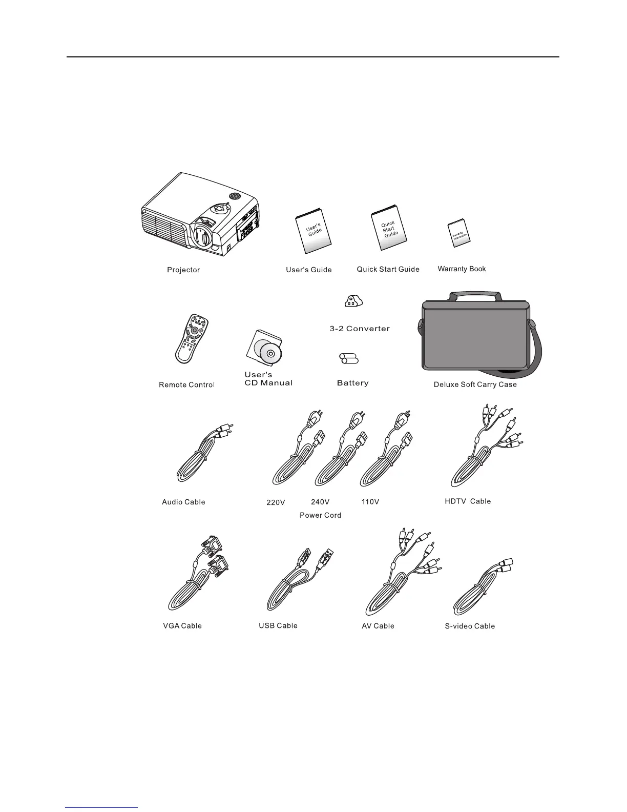 BenQ PB8230 - Shipping Contents; Optional Accessories