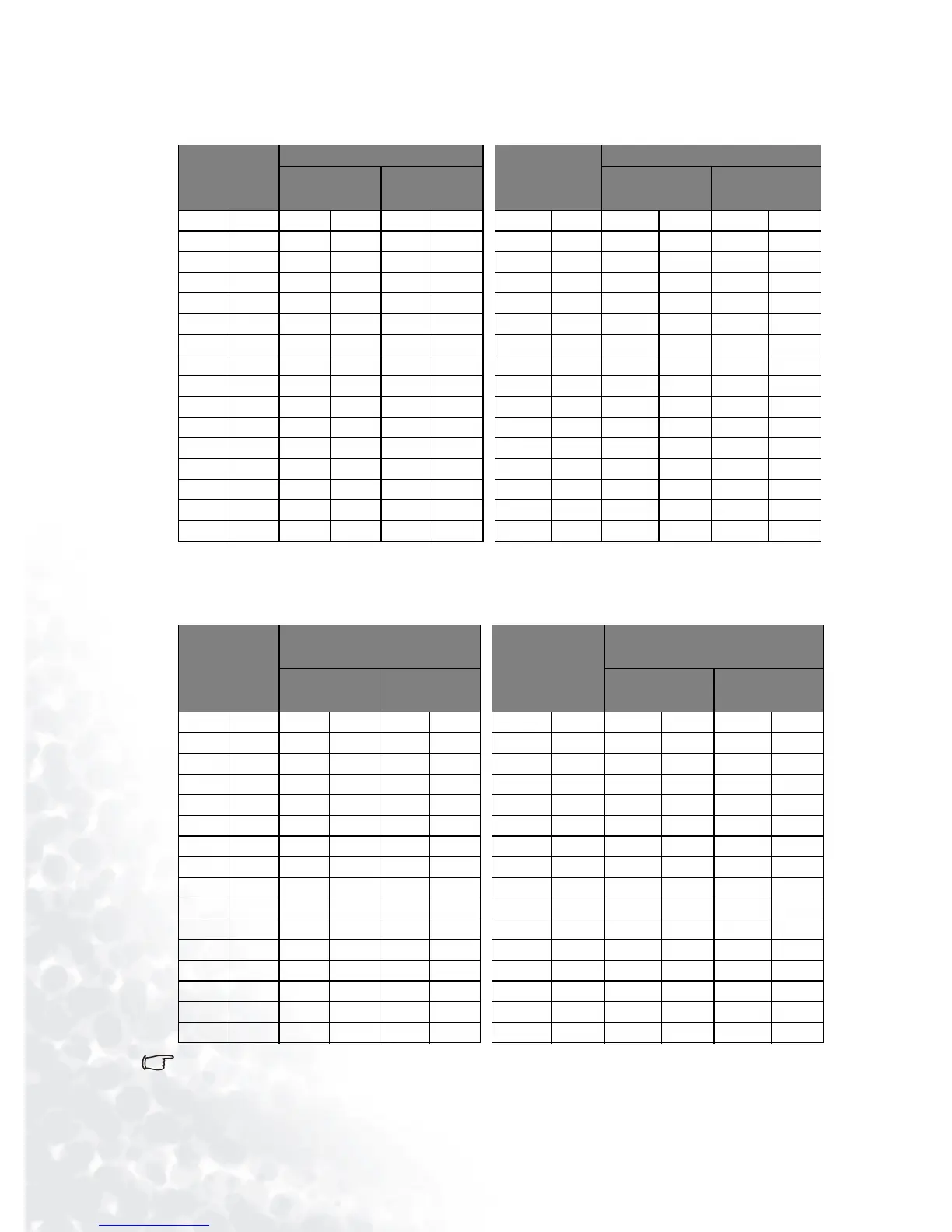 PB8250 (XGA) screen size chart (4:3 aspect ratio)