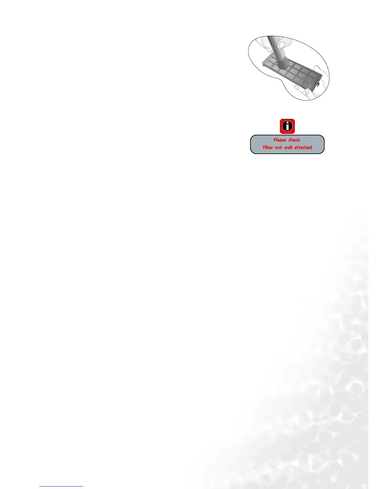 filters securely, then turn on the power again.