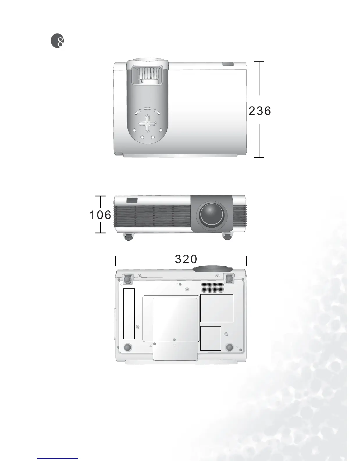 BenQ PB8250 - Dimensions