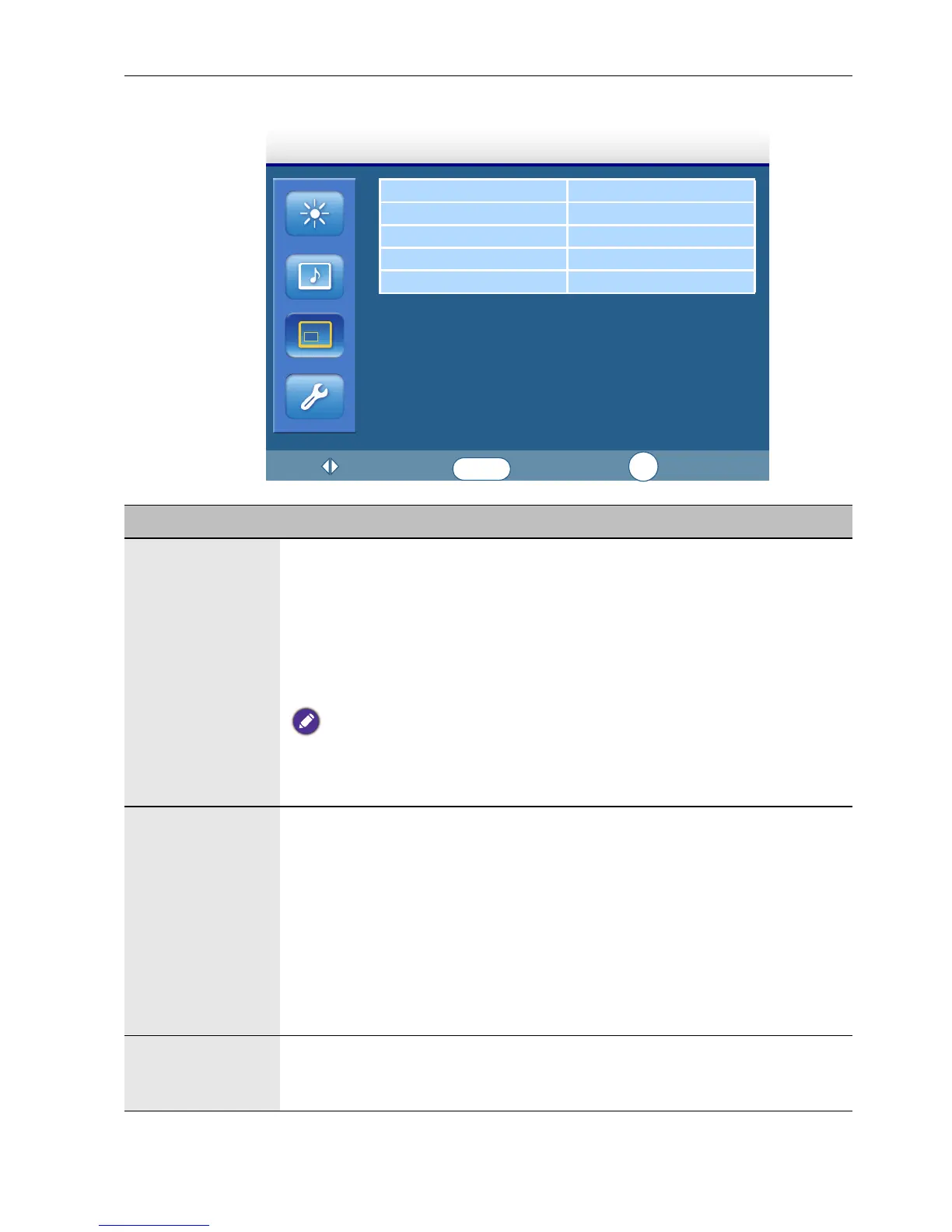 • Picture Position: (PIP only) Changes the position of the sub picture.
