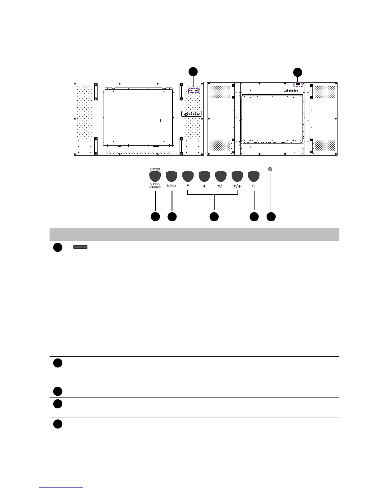 , , /-, /+ • Scrolls through settings and options in the OSD menu.