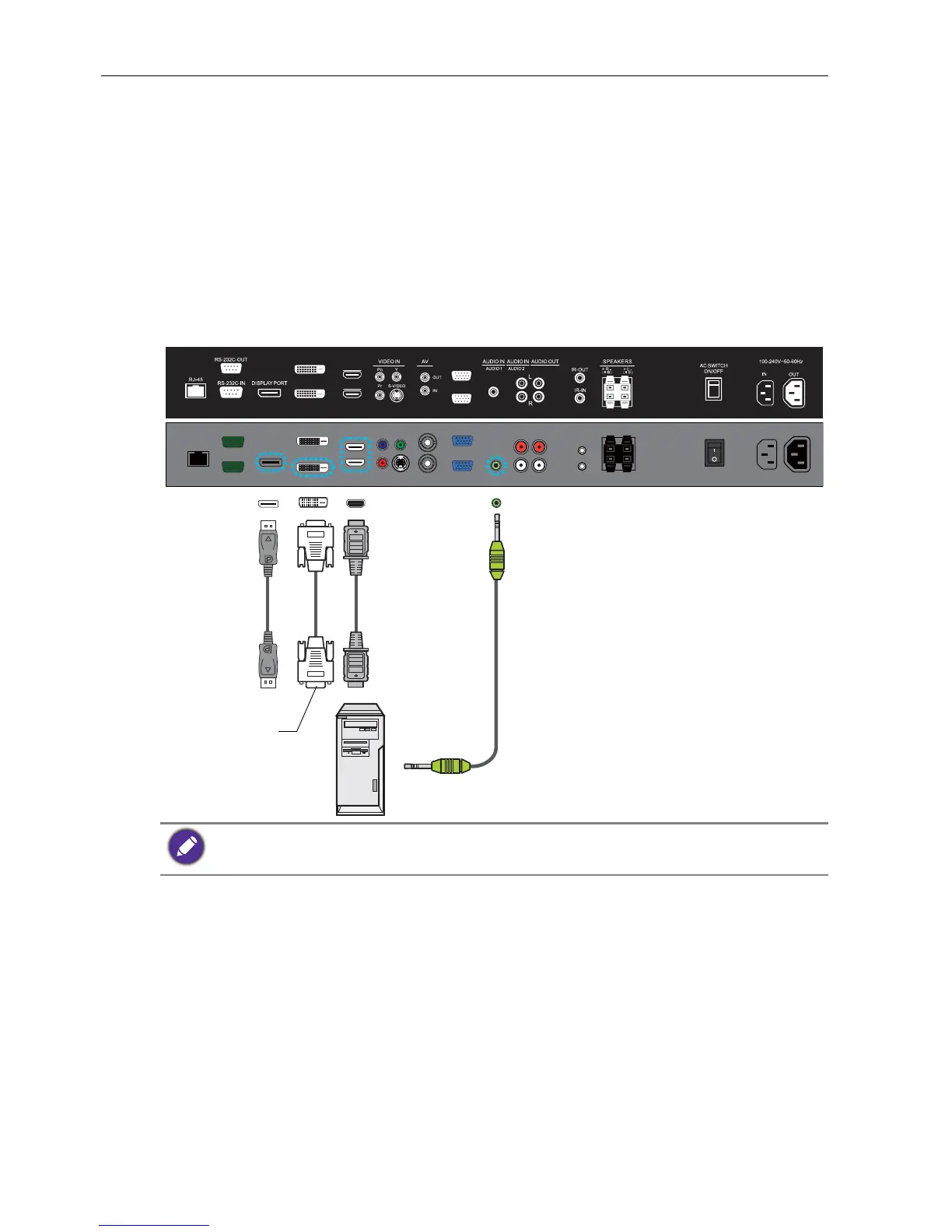 using a DVI-D cable. If the computer has a DisplayPort/HDMI output jack, connect