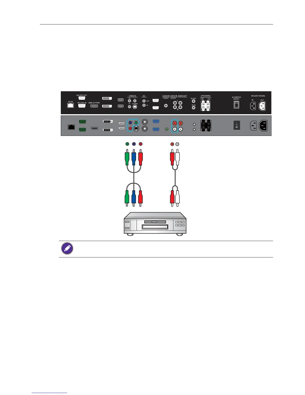 1. Connect the VIDEO IN (YPbPr) jacks on the display to the component output jacks