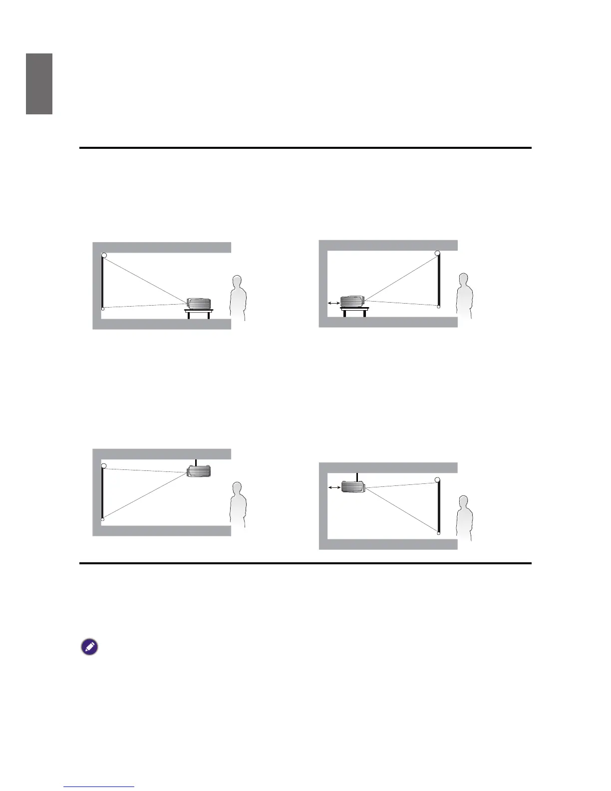 Your projector is designed to be installed in one of four possible installation locations.Your