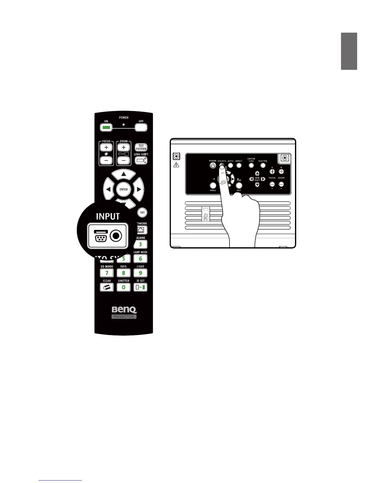 The Input Source can be selected from the projector's control panel or from the remote control.