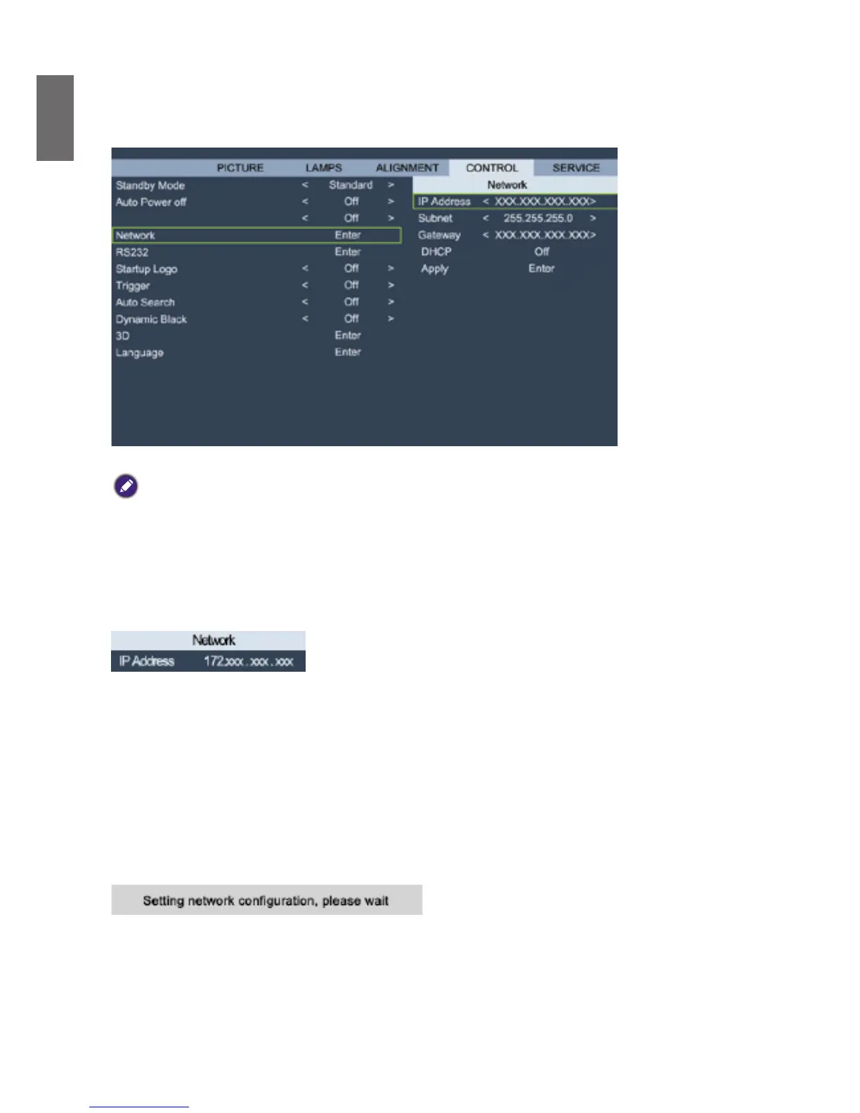 assign an IP address to the projector. That is, the IP address will display in the address window