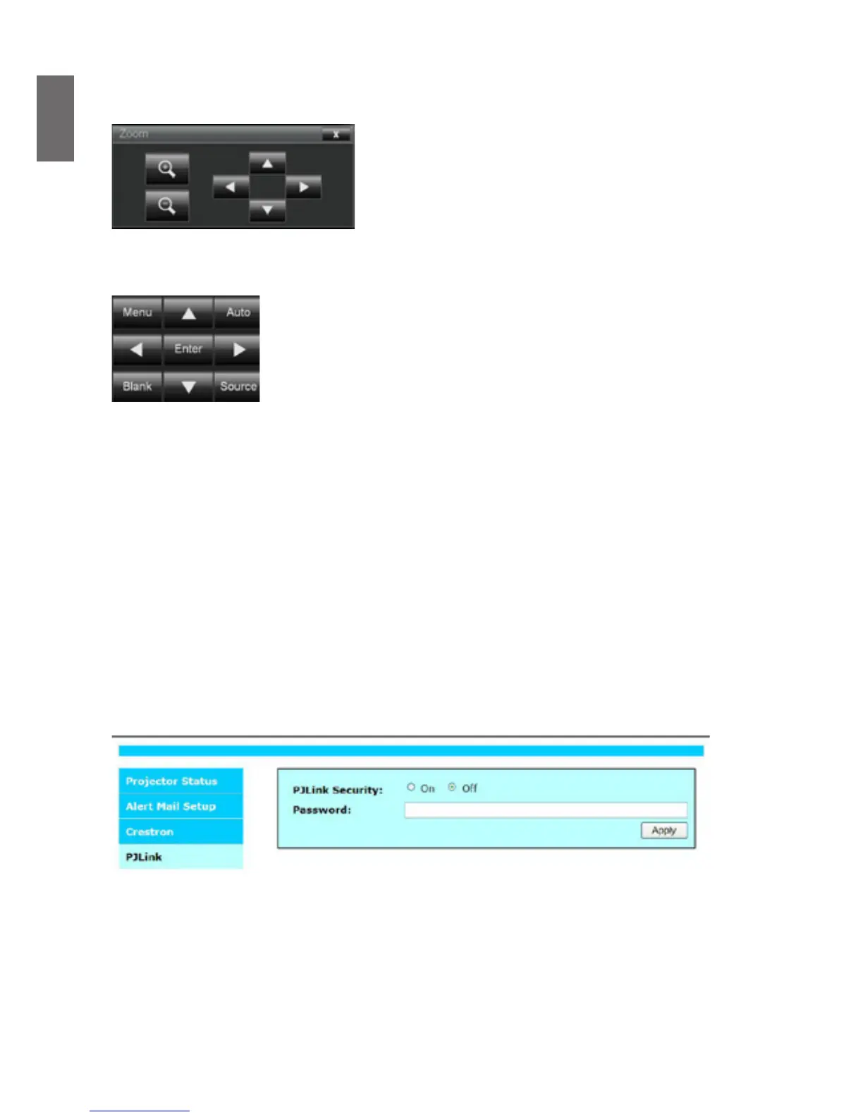 supports PJLink control commands. Please set up password for PJLink connection on this page.