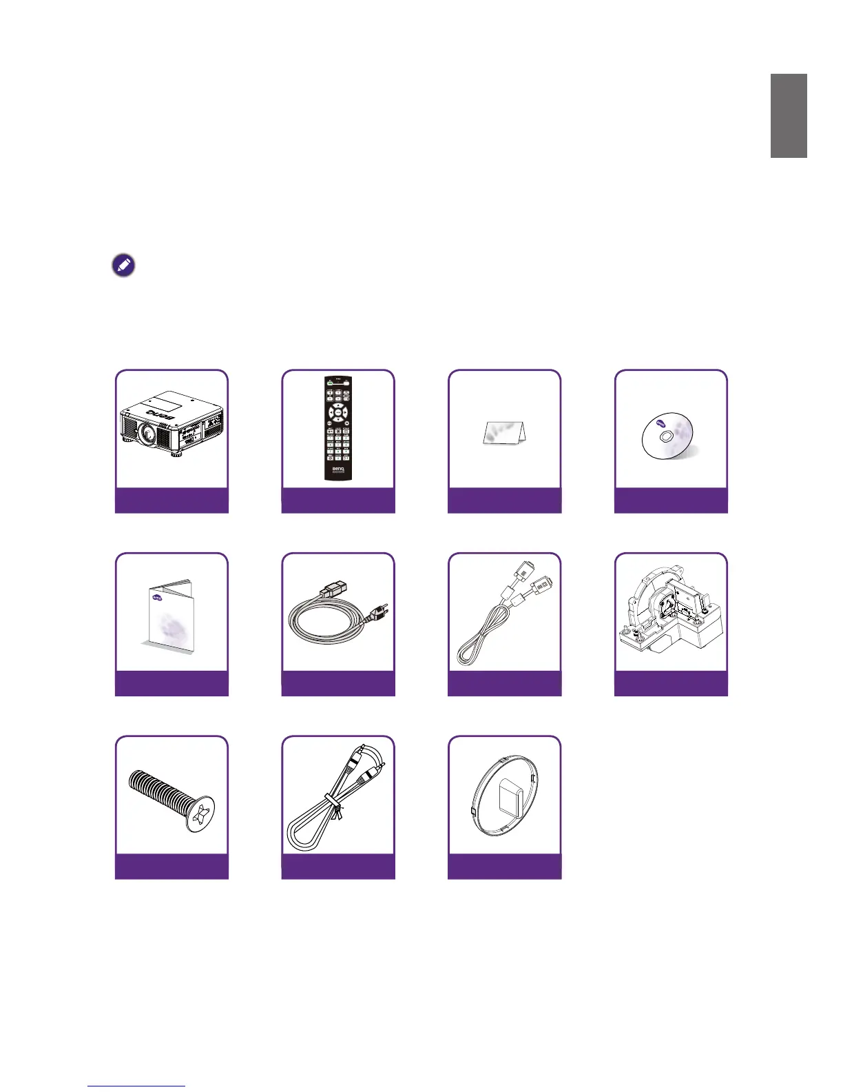 Carefully unpack and verify that you have the items below. Some of the items may not be available