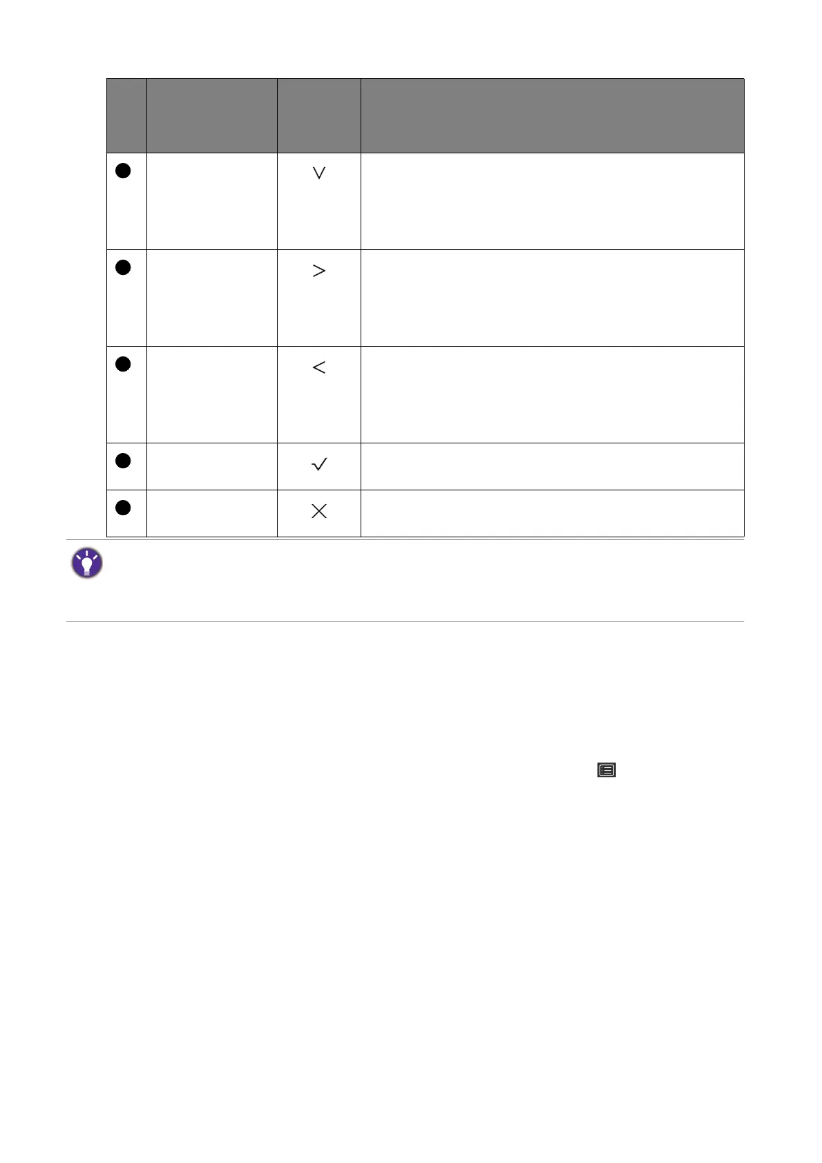 • For Down/Decrease adjustment.