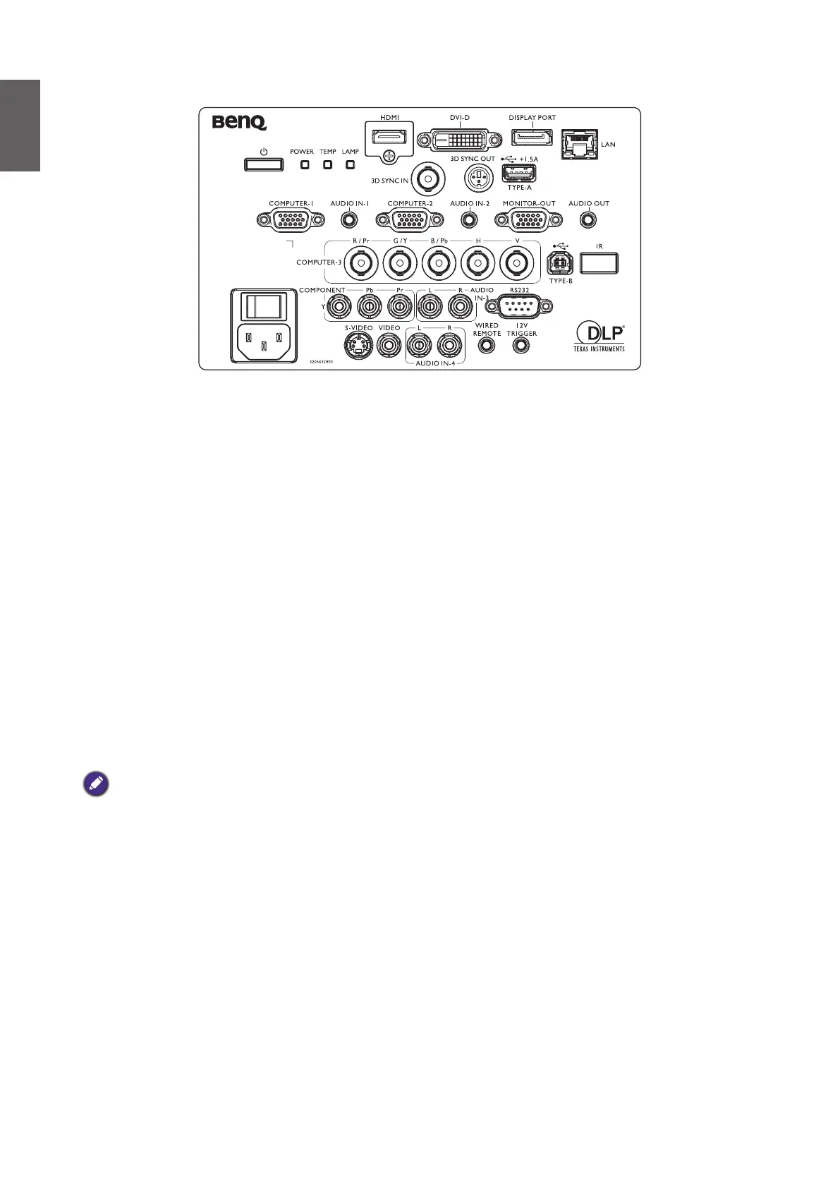 15-pin VGA port for connection to RGB, component HD source, or PC.