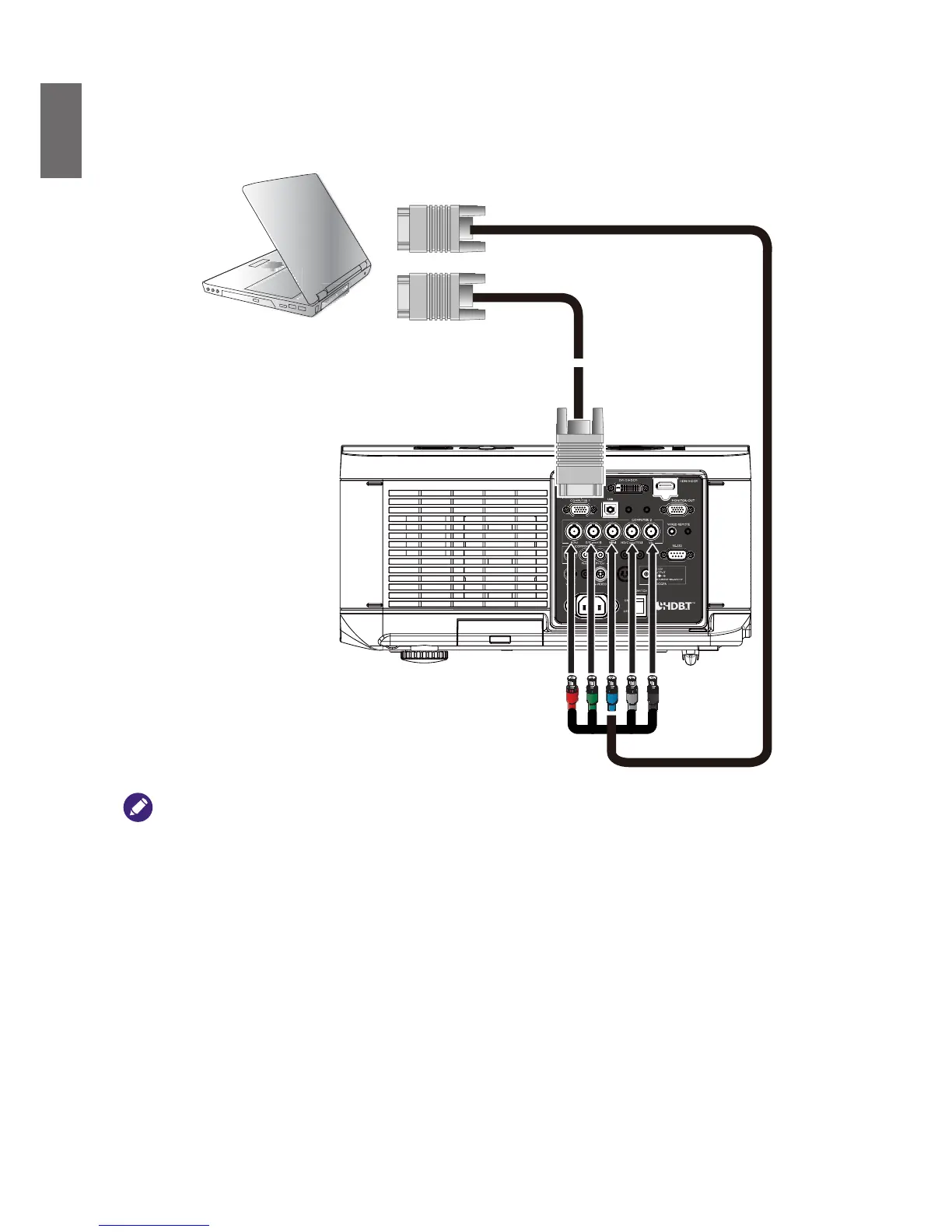 Connect the projector to a computer with a COMPUTER 1 or COMPUTER 2 as below
