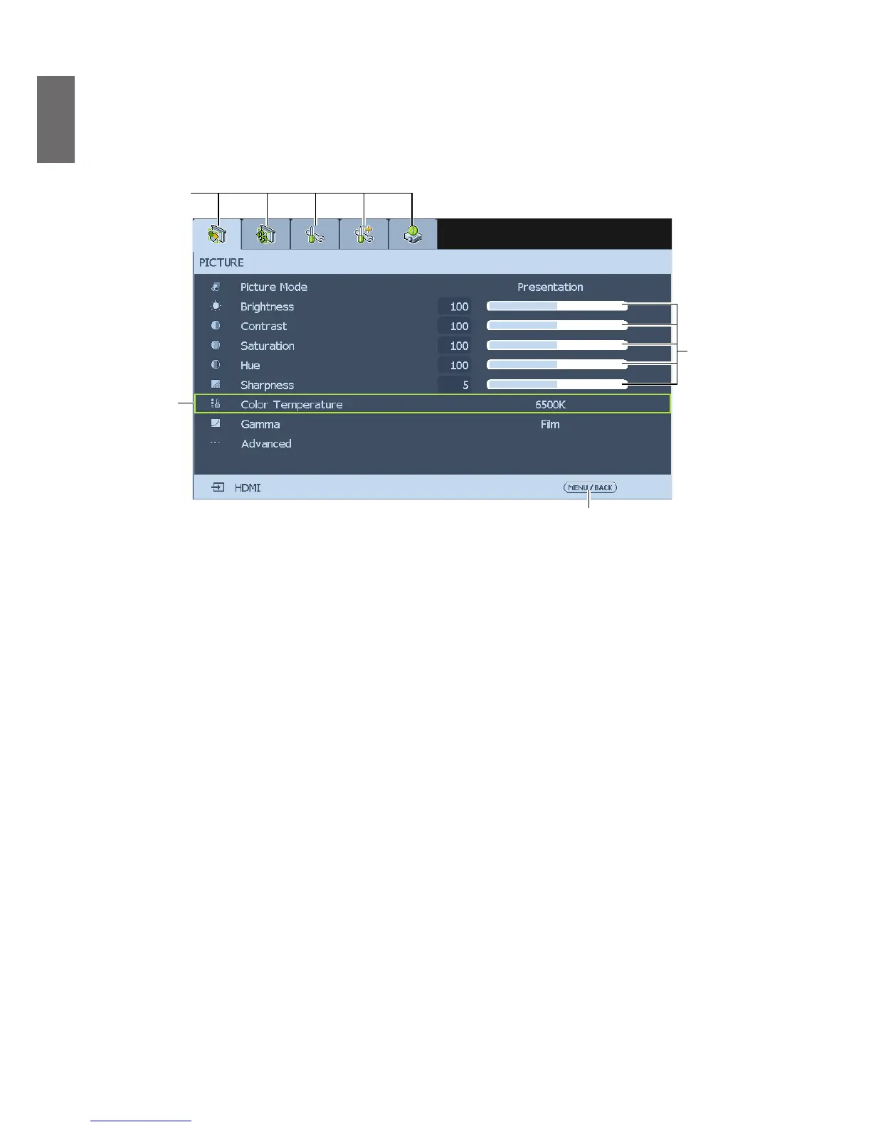 BenQ PX9510 - On-Screen Display (OSD) Menus