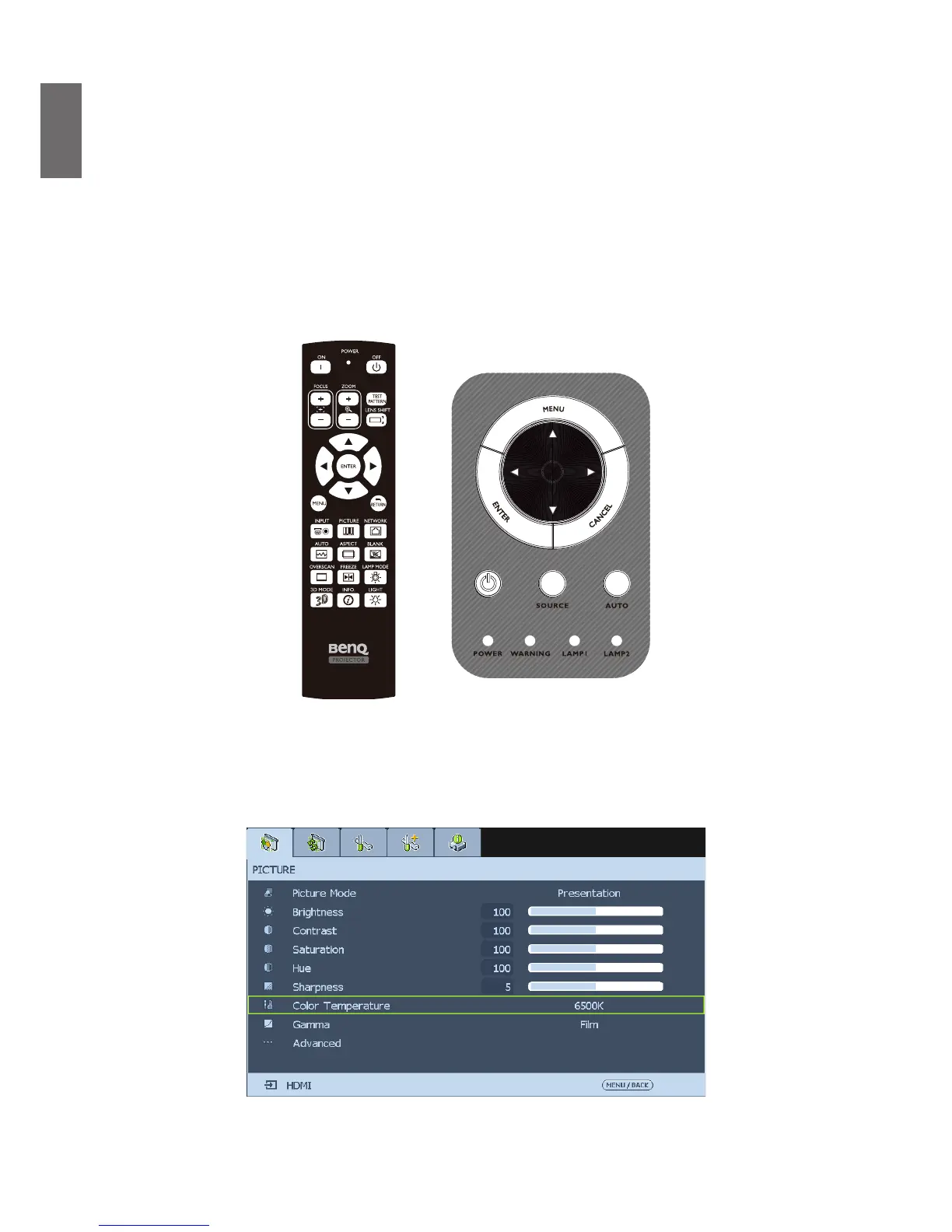The projector has an On-Screen Display (OSD) that lets you make image adjustments and change