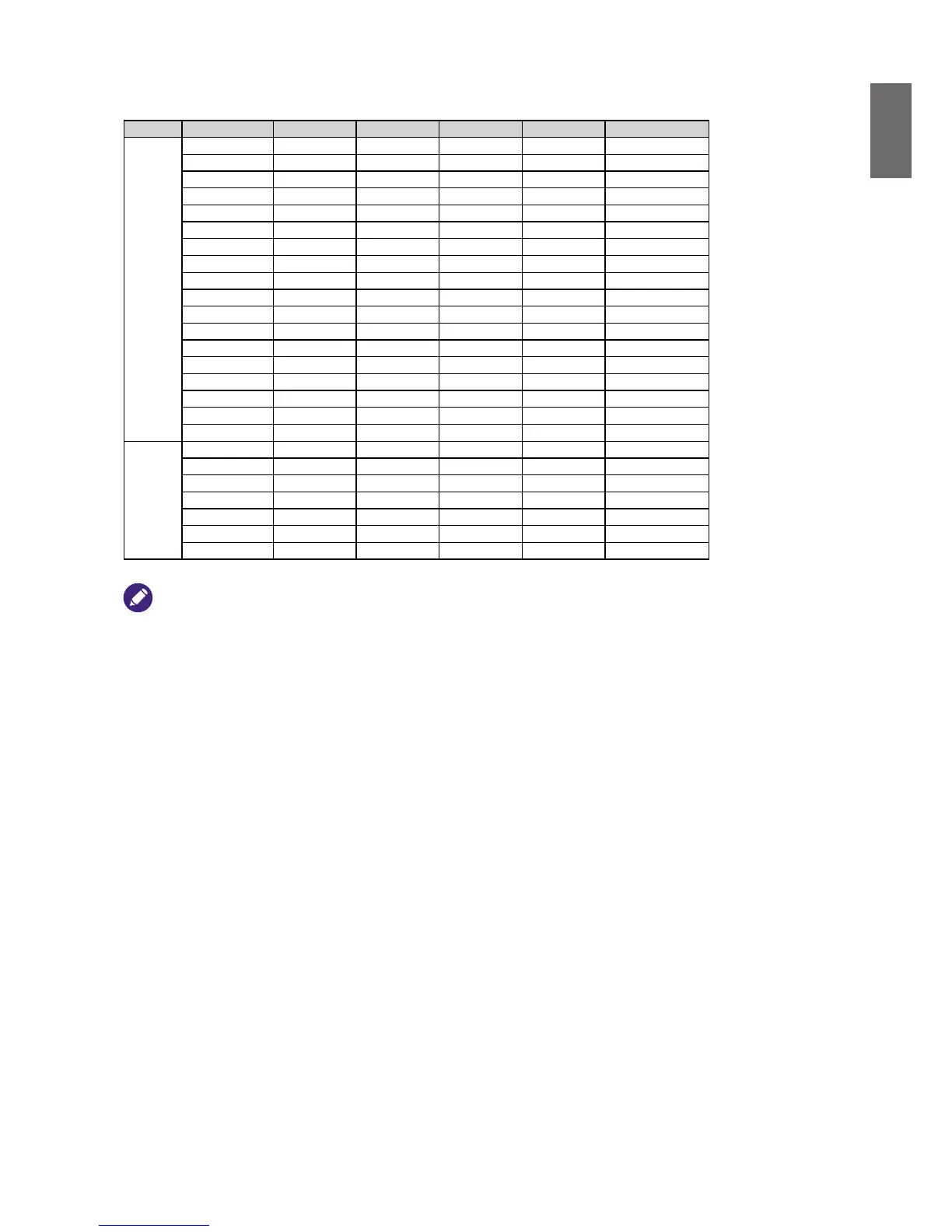 • Signals other than those specied in the table above may not be displayed correctly. If this should happen, change