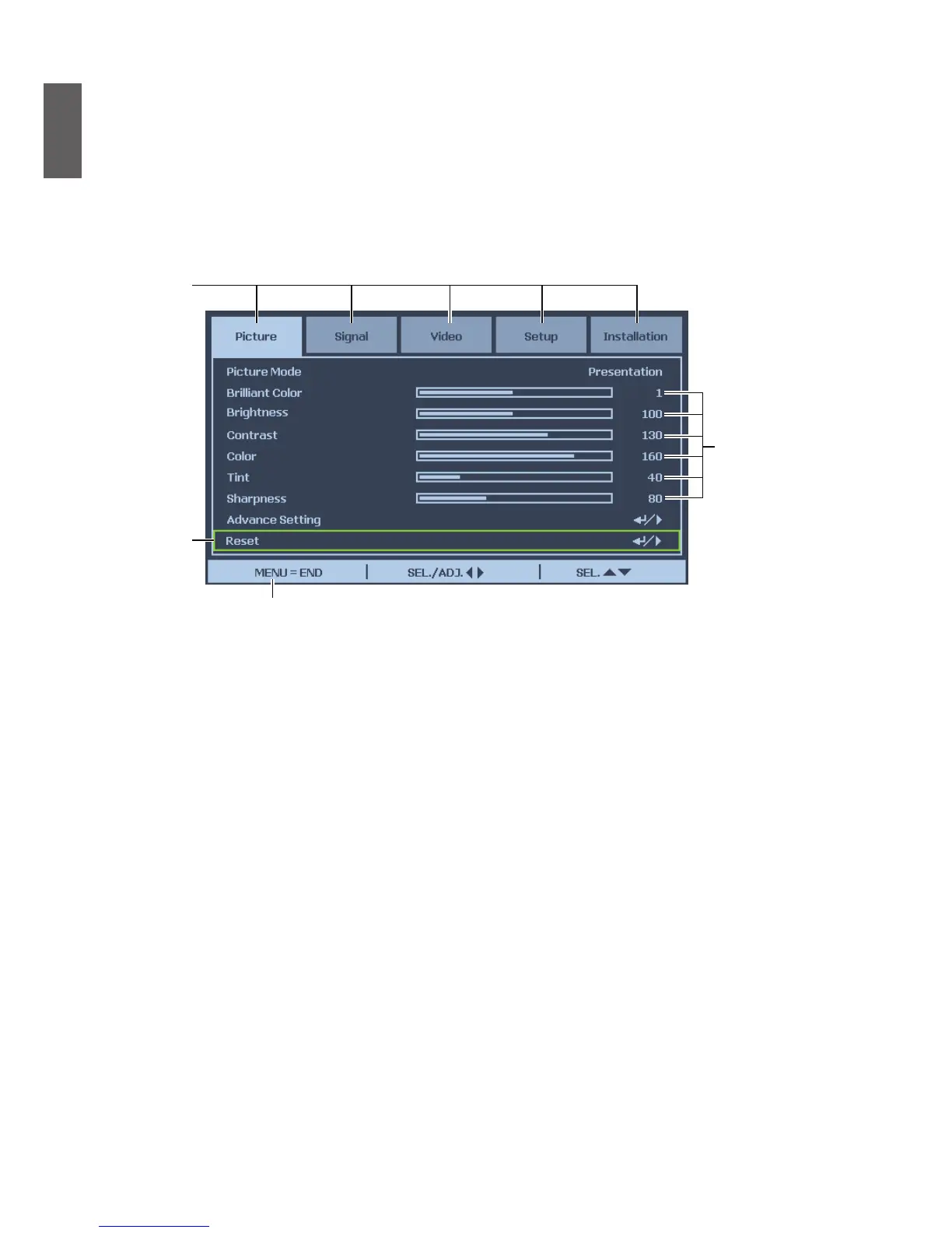 The projector is equipped with multilingual On-Screen Display (OSD) for making various