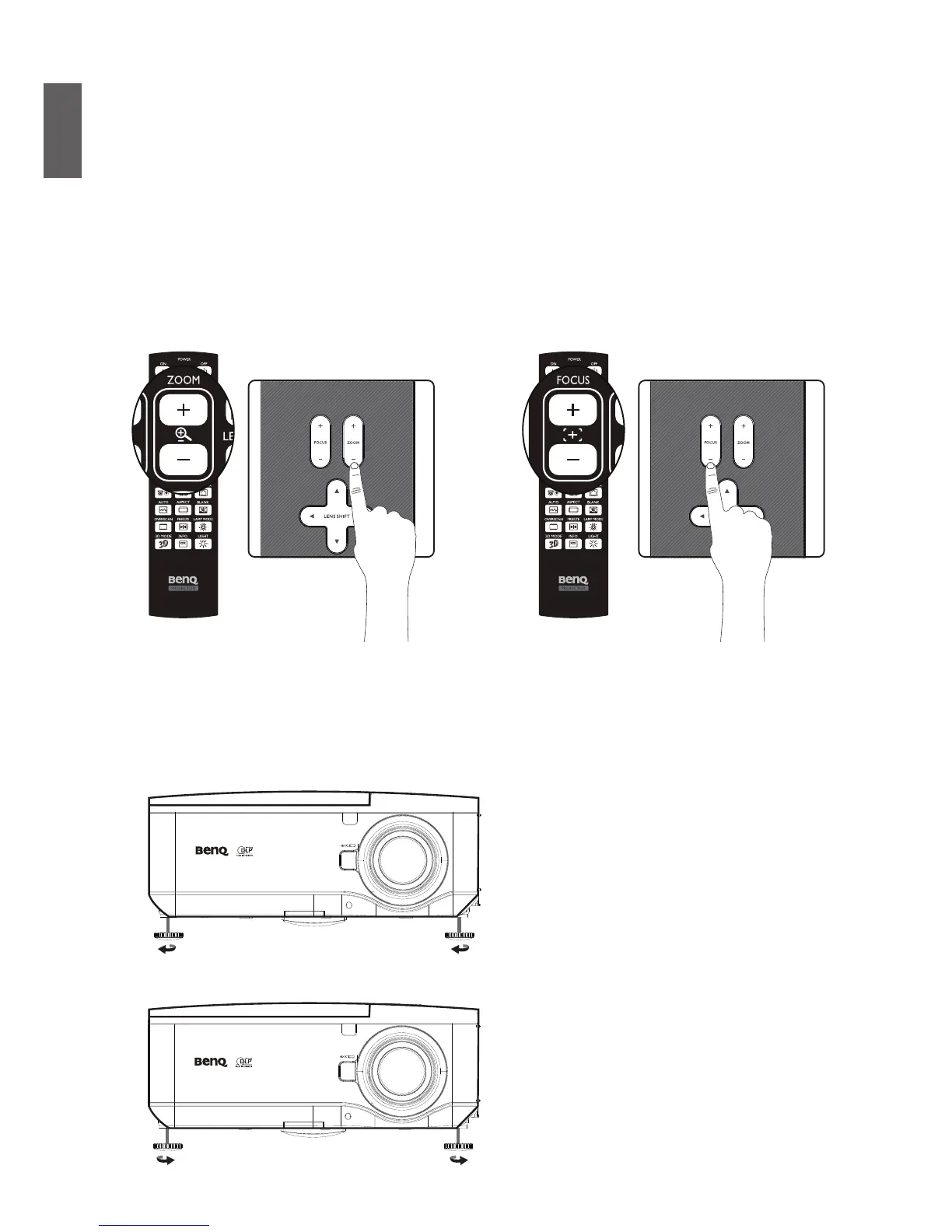1. Press the ZOOM + or ZOOM- button on the control panel or the remote control to adjust