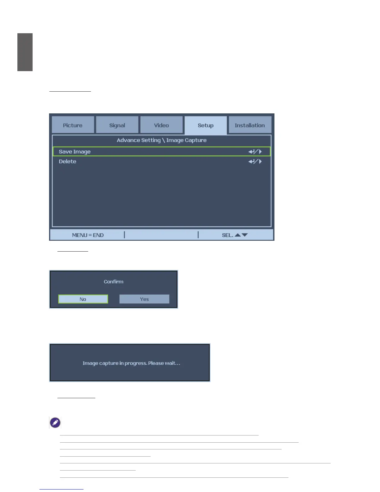 This function allows you to capture the projected image from RGB signal and set it as a startup