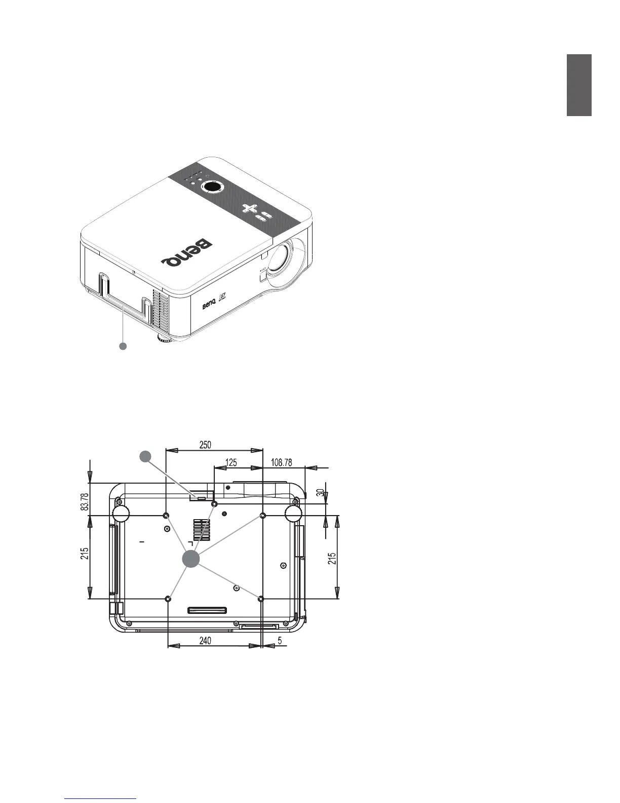 BenQ PX9600 - Upper Right Side View; Under View