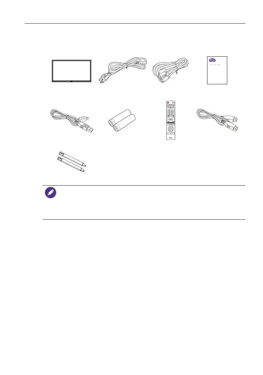 Open the sales package and check the contents. If any item is missing or damaged, please