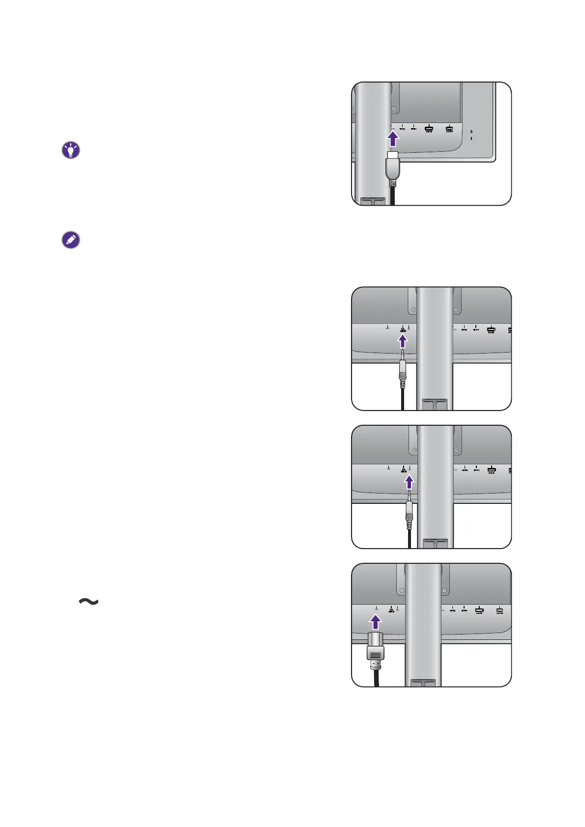 To output signal from your monitor, connect the plug of